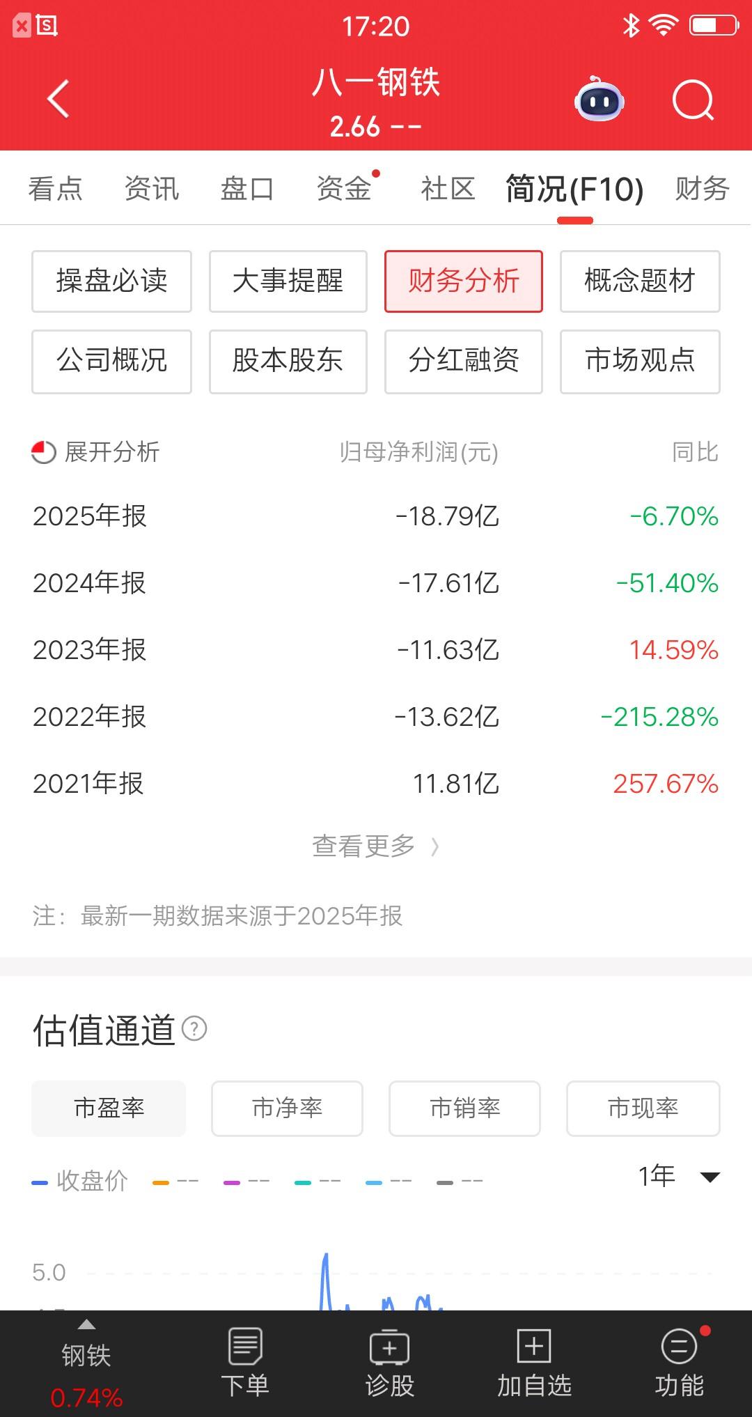 双重利空堪比核弹呀,人倒霉起来喝凉水都塞牙,这话没毛病。八一钢铁公告,股票明日复牌并被披星戴帽*ST。不仅是业绩不达标,而且持续经营能力存在不确定性。8.37万股东踩雷,账户要大亏了。按照以往的惯例,这种利空没三五个地板,根本出不来的。 这个巨雷其实是可以避开的,22年亏13.62亿,23年亏11.63亿,24年亏17.61亿。但凡选股严谨一点,会过滤掉的。 事已至此,里面的股友,保持乐观心态吧。