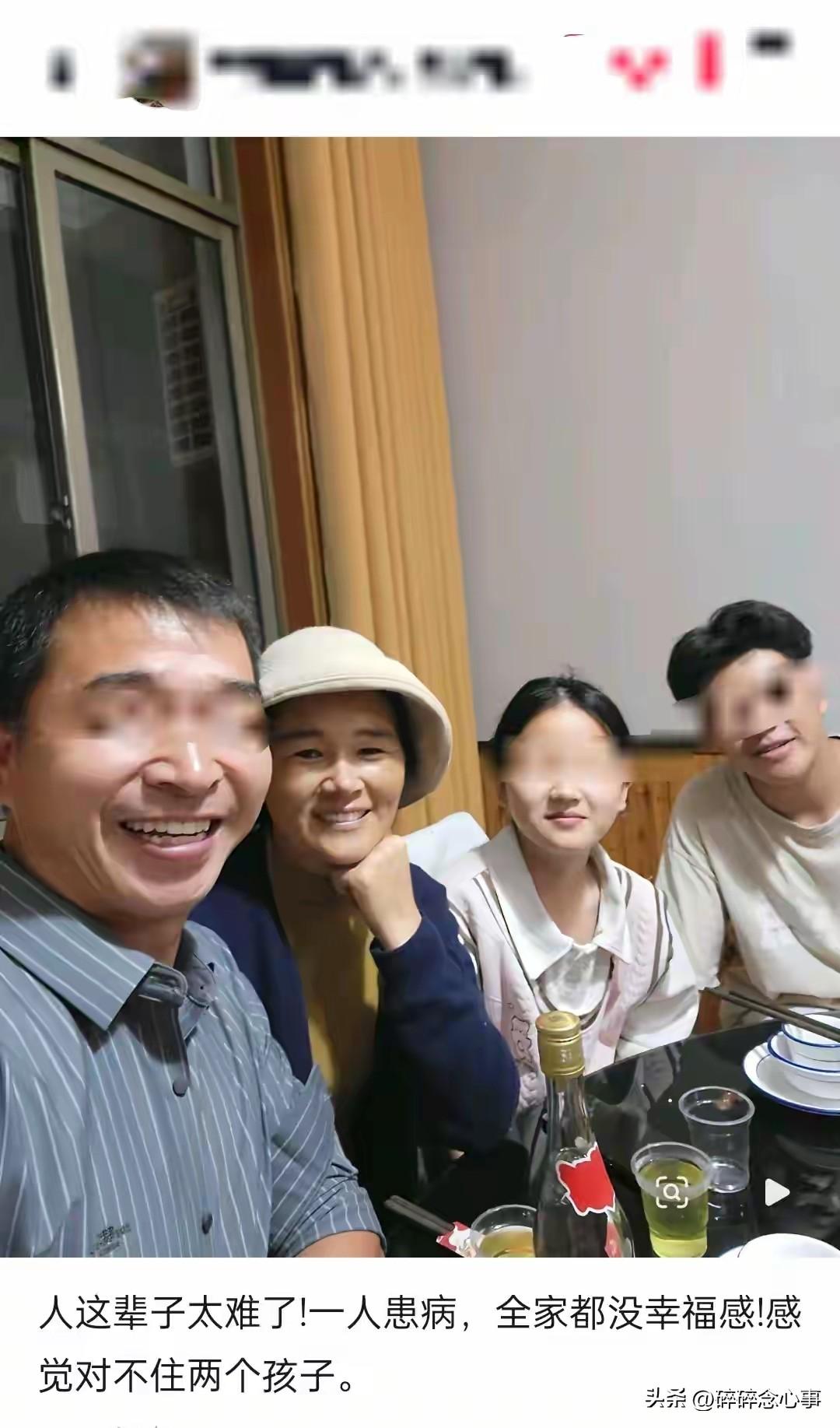 惋惜!我错了,我真的错了。 这是丈夫写给亡妻道歉信里的一句话。可没人知道他错在哪。 他错在没早点发现?错在没能力救她?还是错在—— 好好的一个人,怎么说没就没了? 3月17日,河南商丘,45岁的王萍走了。从确诊到离世,前后不到12个月。 她的丈夫发了条动态,字不多,却让人看完心口堵得慌。 “对不起,老婆,在你走后的这十二天夜里,你不知道我是怎么过来的。我整夜整夜睡不着,只能靠酒来麻痹自己,想借着酒劲睡一觉,可醒了以后,你还是不在。” 他一定想了很久,才写下这些字。每一个字都像从牙缝里挤出来的。 去年4月之前,她还是人人羡慕的人生赢家 王萍是商丘一个园艺店老板娘。丈夫能干,儿女双全,两人恩爱。 她皮肤白,眼神温和,爱笑,爱生活。镜头里,她和丈夫在饭桌上“猜码”,笑得前仰后合。节假日两人一起庆祝,朋友聚会她永远是那个活跃气氛的人。 她不怕吃苦。园艺店又脏又累,她一干就是十几年,亲力亲为。打理盆栽、招呼顾客,样样拿手。日子越过越好,买了新房,衣食无忧。 儿女也争气,乖巧懂事,成绩优异。 这样的日子,谁不羡慕? 她自己也觉得,这辈子值了。平淡、幸福、安稳,会一直这样下去。 直到去年4月。 胳膊上长了个结节。她没太当回事,去医院一查—— 透明细胞肉瘤。 这五个字,把她的下半辈子,硬生生砍掉了。 从确诊到离世,只有11个月 4月确诊,夫妻俩马上去了上海。做手术,回当地继续治疗。 可病魔不饶人。 短短几个月,那个皮肤白皙、爱笑爱美的王萍,被折腾得判若两人。 头发剪光了,戴上假发。人瘦得脱了相,生活慢慢不能自理。 可她还在笑。 病床上,她仍然对着镜头比耶。脸肿了,脚也肿了,连睁眼的力气都快没了,她还是要比那个“耶”。 她丈夫在旁边陪着,一步没离开。发动态祈盼:“愿妻子早日康复,在以后的日子里,无灾无难,平安顺遂。” 可老天没听见。 结婚23周年,她最后比了一个耶 今年2月10日,一家四口拍了最后一张全家福。王萍坐在中间,笑容很淡,精神还行。 一个月后,3月14日,是他们结婚23周年纪念日。 丈夫特意订了蛋糕。照片里,王萍虚弱得不行,脚肿得老高,整个人靠在床上,连笑都很吃力。 但她还是努力伸出了手,比了一个“耶”。 这是她最后一次出现在镜头里。 三天后,她走了。 她走之前交代了什么? 丈夫的道歉信里,有一句:“你走之前交代我的话,我从今天起,一样一样能做到。” 他没说交代了什么。 但从字里行间能猜出来——两个孩子。 她最放不下的,是那对儿女。 她说,你要好好的,健健康康的,把两个孩子操心成功,让他们成家立业,过上我想要看到的好日子。 她说,答应我。 他说,好。 可他还是觉得“我错了”。错在哪儿?没人知道。也许他觉得,如果自己再细心一点,早点发现;如果自己再有钱一点,能找到更好的医生;如果自己再努力一点—— 可惜,没有如果。 说几句心里话 45岁,儿女双全,夫妻恩爱,事业有成。 这八个字,是多少人奋斗一辈子想要的生活。 王萍都有了。可她没留住。 去年4月确诊,今年3月离世。前后不到12个月。 她的朋友圈里,曾经写下这样一句话: “人到中年才明白,人生最大的财富是无病无灾,平安健康,其他的顺其自然就好。” 这句话,她一定想了很久才写出来。也许是在化疗的间隙,也许是在深夜疼醒之后,也许是在看着丈夫忙碌的背影时。 她明白了,可来不及了。 写到这里,突然想起一句话: 我们总以为来日方长,却忘了世事无常。 总以为还有明天,还有明年,还有下半辈子。 可有些人,连下个月都没等到。 王萍走了,留下一个哭成泪人的丈夫,两个还没成家的孩子,和一个空荡荡的园艺店。 她丈夫说,从今天起,我要好好的,健健康康的,把孩子操心成功。 这是她交代的,他得做到。 最后,想对看到这里的你说一句: 别总拿命换钱。 别总说“再熬一熬就好了”。 别总等到身体报警了才想起来,原来健康不是理所当然的。 去体检吧。少熬夜吧。多陪陪家人吧。 别等到来不及了,才说“我错了”。 愿王萍一路走好。 愿她的丈夫和孩子,带着她的爱,好好活下去。 愿每一个正在看文章的你,平安,健康。 评论区说说:你有多久没体检了?