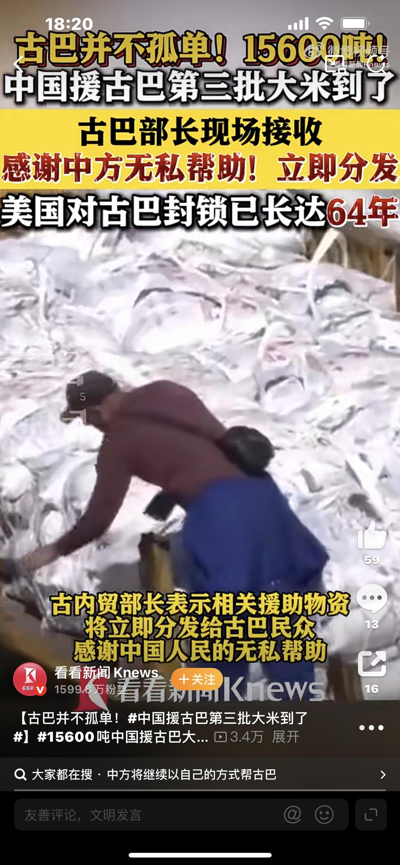 标题:15600吨中国大米抵古巴!累计9万吨救命粮,这才是真正的大国担当! 你敢信?一艘挂着五星红旗的巨轮,跨越1.2万公里太平洋,把15600吨中国大米送到古巴哈瓦那港!码头欢呼沸腾,古巴人哭了:中国兄弟,我们不孤单! 3月28日,中国援古巴第三批15600吨大米正式交付,今年1月承诺的3万吨紧急援助全部落地!更硬核的是,中国已追加6万吨,累计9万吨,够1100万古巴人吃整整两个月! 一开始有人质疑:送米能解决什么? 但真相扎心:古巴被封锁64年,农机化肥断供、粮食80%靠进口,2025年缺口80万吨,30%人陷入隐性饥饿,连买米都要排队! 这不是普通捐赠: • 每袋大米印着中国援助,优先发给老人、孩子、困难家庭 • 48小时内分发到全国,每吨做8000份餐,直接救急民生底线 • 不止送粮,还帮建抗旱稻种库、光伏灌溉,从“输血”变“造血” 更反转:就在大米抵港前,美国还在加码制裁,断油断电、全国大停电。但中国不讲条件、不搞政治附加,一船船白米,把患难见真情写进现实! 有人说大国博弈靠航母导弹,但中国用最朴素的方式证明:真正的强大,是在别人最难时,伸手托住饭碗。 从1960年建交,到今天9万吨救命粮,中古友谊不是口号,是跨越山海的守望相助。 封锁挡不住温暖,距离隔不断情谊。中国的援助,暖的是古巴人的胃,稳的是普通人的家,亮的是人类命运共同体的光。 你被这份跨越山海的温暖戳中了吗?你还知道哪些中国援助的暖心故事?评论区聊聊,点赞过万,盘点中国援外的硬核瞬间! 中国援古巴大米 大国担当 中古友谊 人类命运共同体 雪中送碳!古巴援华 中国援古大米