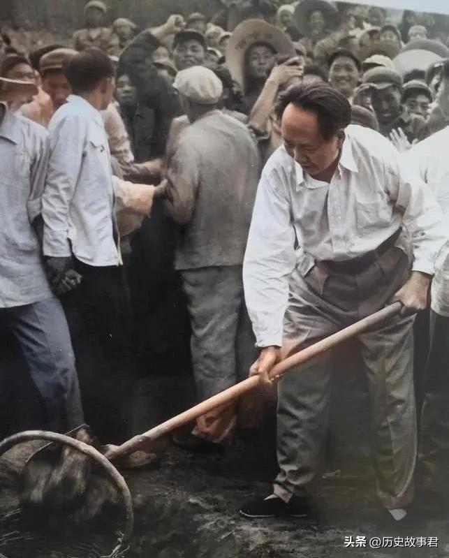 不能错过珍贵照片 毛主席在水库义务劳动的珍贵照片,1958年5月,毛主席来到十三陵水库参加劳动,毛主席来到工地后,拿起铁锹,熟练地挖土施工。在毛主席的带领下,大家参加义务劳动的积极性被充分调动起来,形成一个建设热潮。 照片中可以清晰的看到,毛主席穿着普通白衬衫,脚上穿着一双布鞋,远远看去,就像一位普通的老百姓。珍贵怀旧老照片