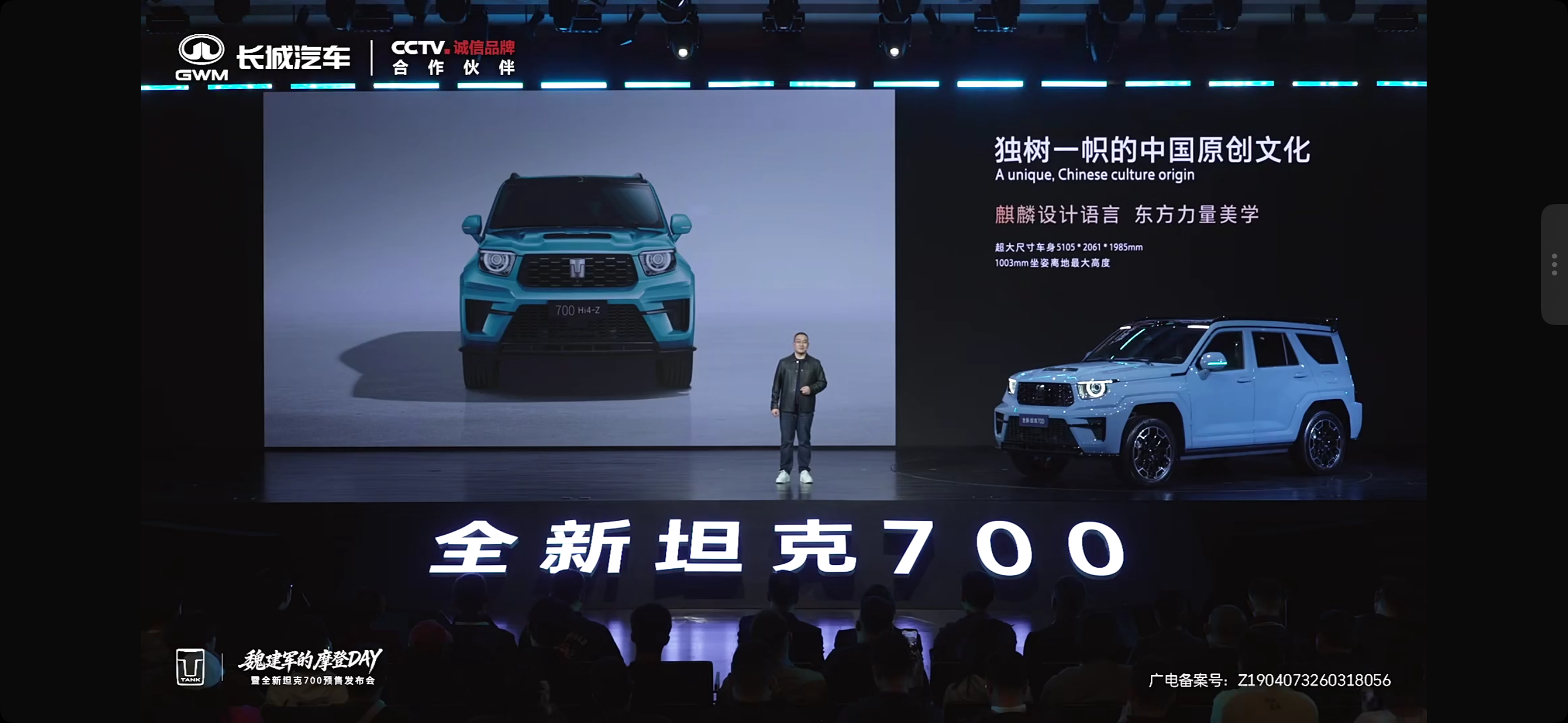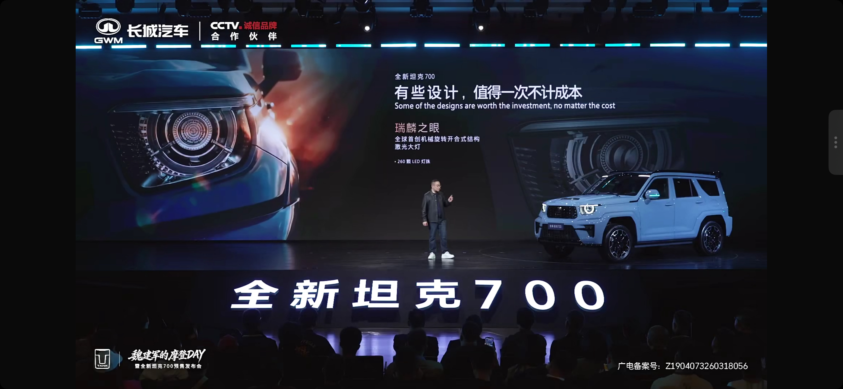 全新坦克700就一个字:帅!整体外观设计是百分之百全原创设计的以麒麟为灵感的设计语言。是独树一帜的中国原创文化的典型之一。前脸上我觉得最亮眼的设计是全球首创机械旋转开合式结构激光大灯。在看短片的时候,这个大灯旋转一亮的瞬间真的太未来科幻感了!