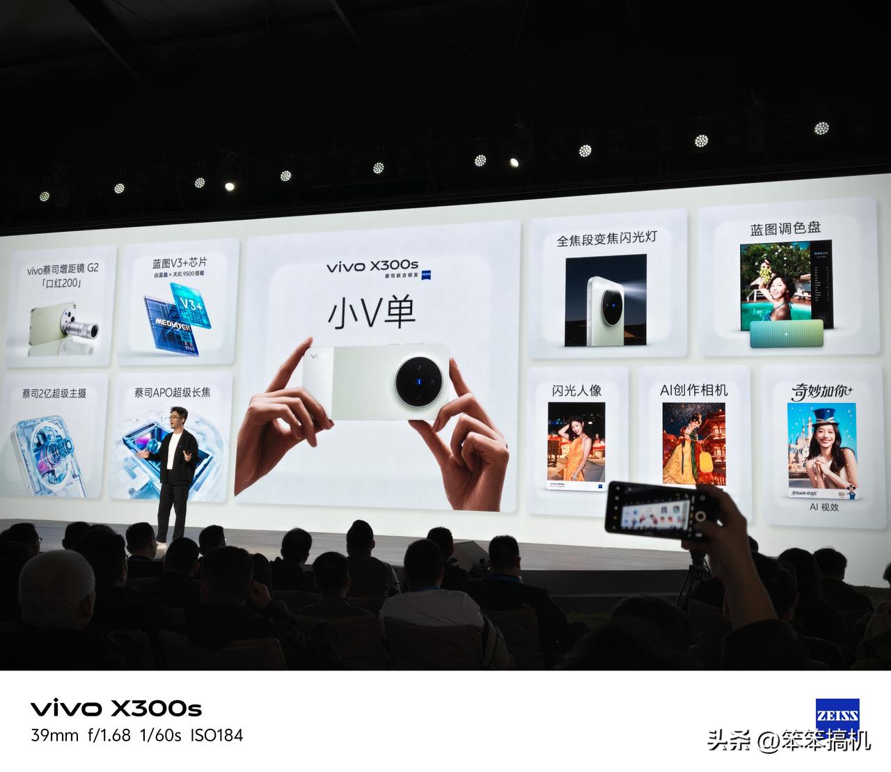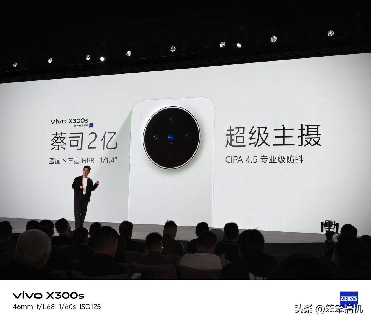 X300s超能小V单蔡司2亿超级主摄(1/1.4英寸HPB、CIPA 4.5防抖)、蔡司APO超级长焦(蓝图×索尼LYTIA602)、蓝图影像芯片V3+(蓝晶x天玑9500搭载)。
