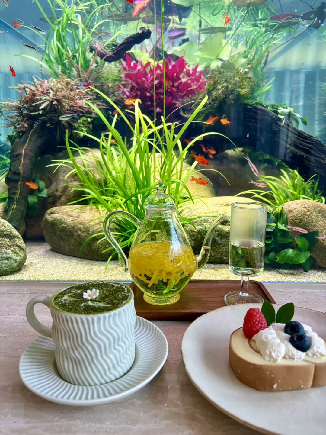 雨天在室内听雨观鱼,晴天在露台晒太阳,各有风味。