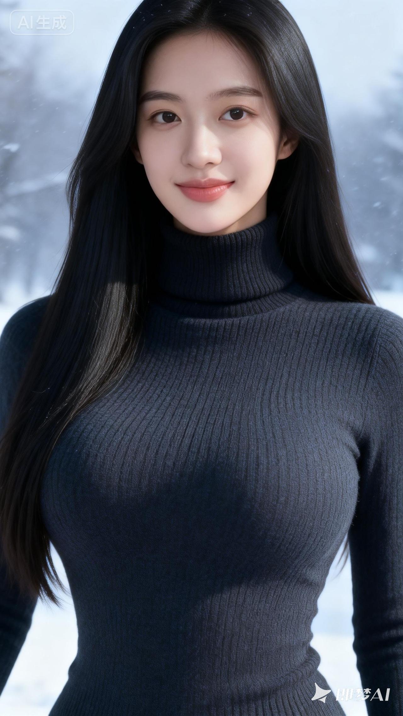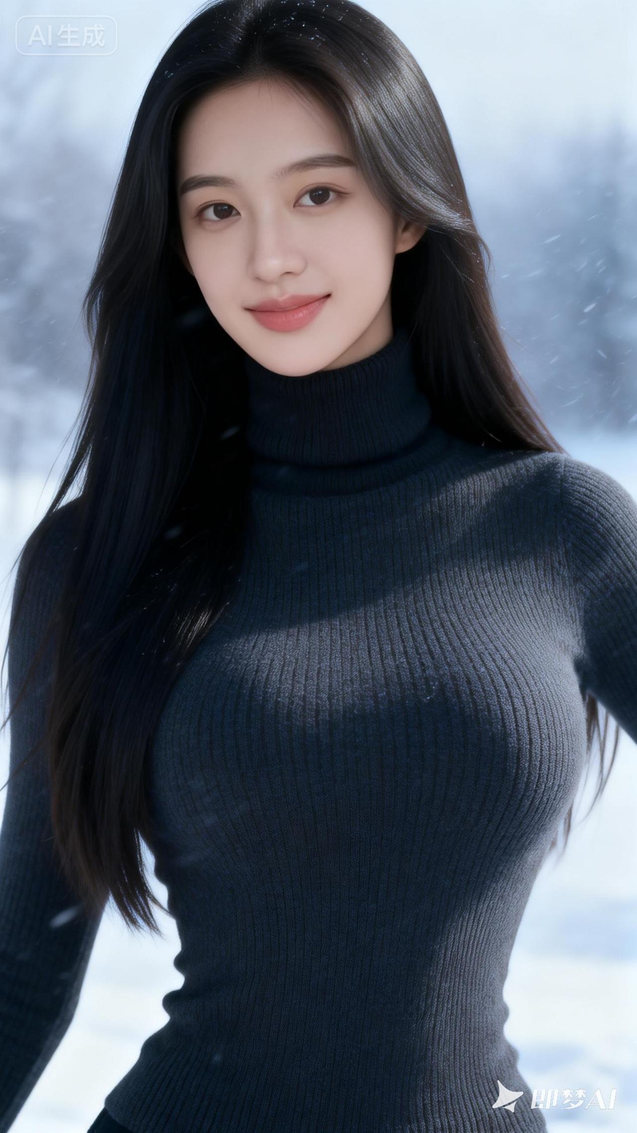 冬日暖阳下的温柔少女,雪景中的甜美笑容