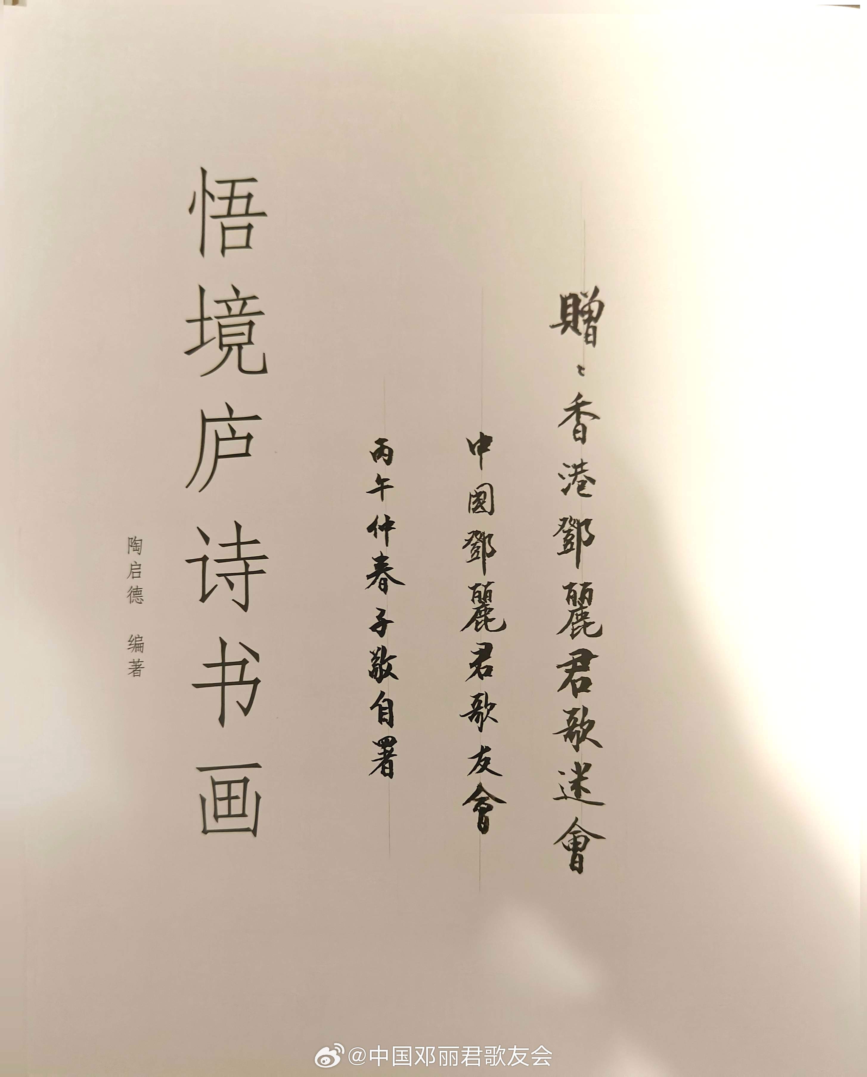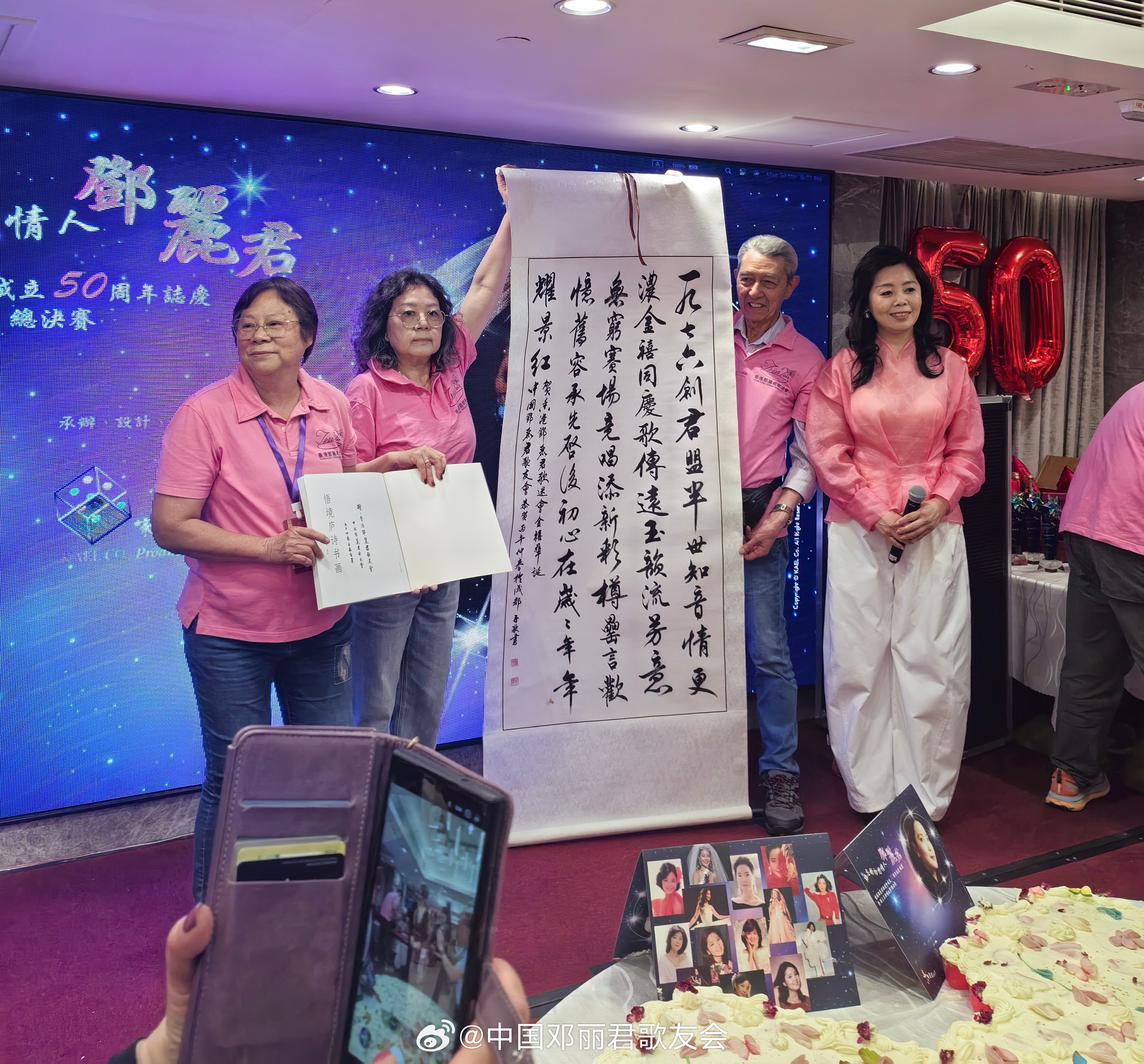 《贺香港邓丽君歌迷会金禧华诞》一九七六创君盟,半世知音情更浓。金禧同庆歌传远,玉韵流芳意无穷。赛场竞唱添新彩,樽罍言欢忆旧容。承先启后初心在,岁岁年年耀景红。丙午年春月中国邓丽君歌友会 恭贺(加林执笔)