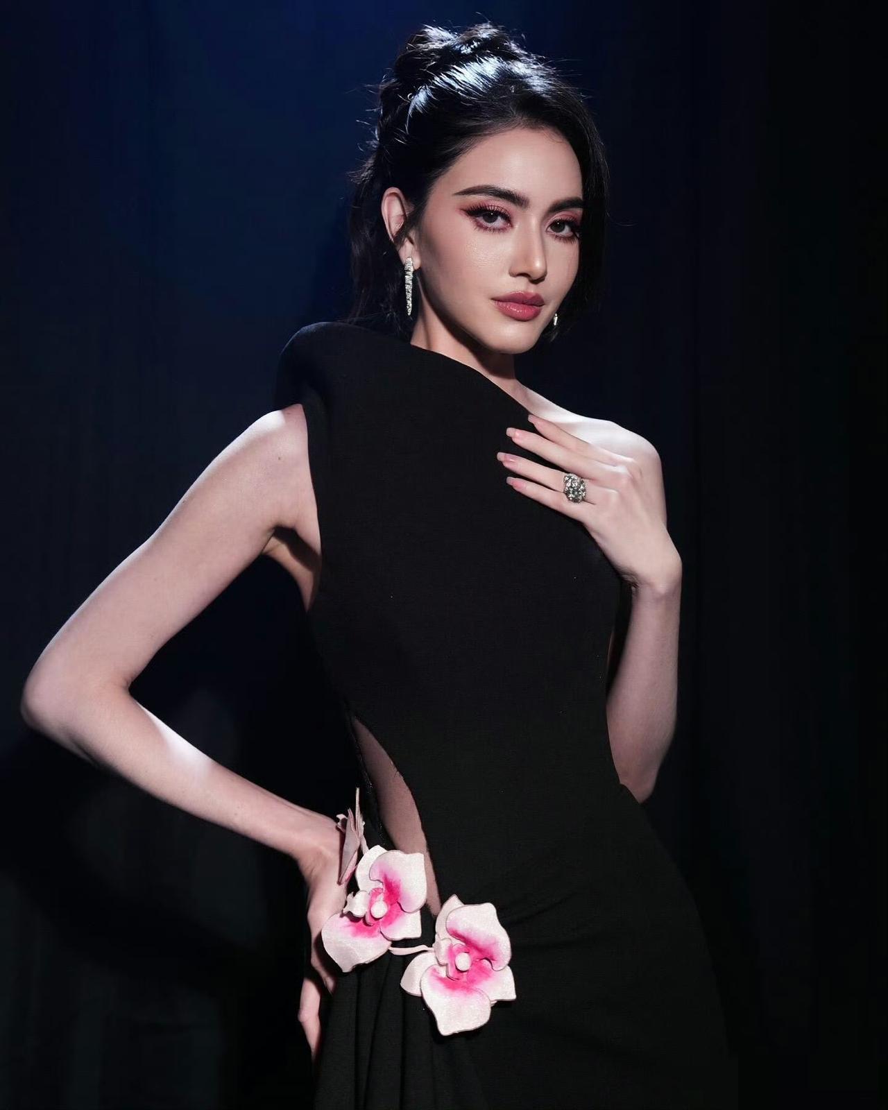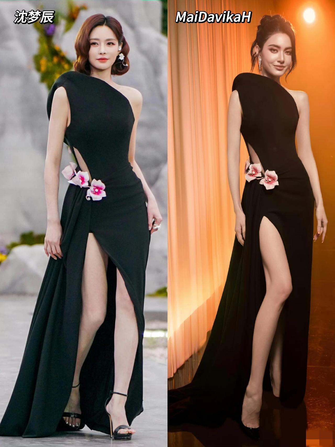 沈梦辰一袭RED GALA镂空花朵黑裙惊艳亮相,竟与Mai姐意外撞衫!然而她气场