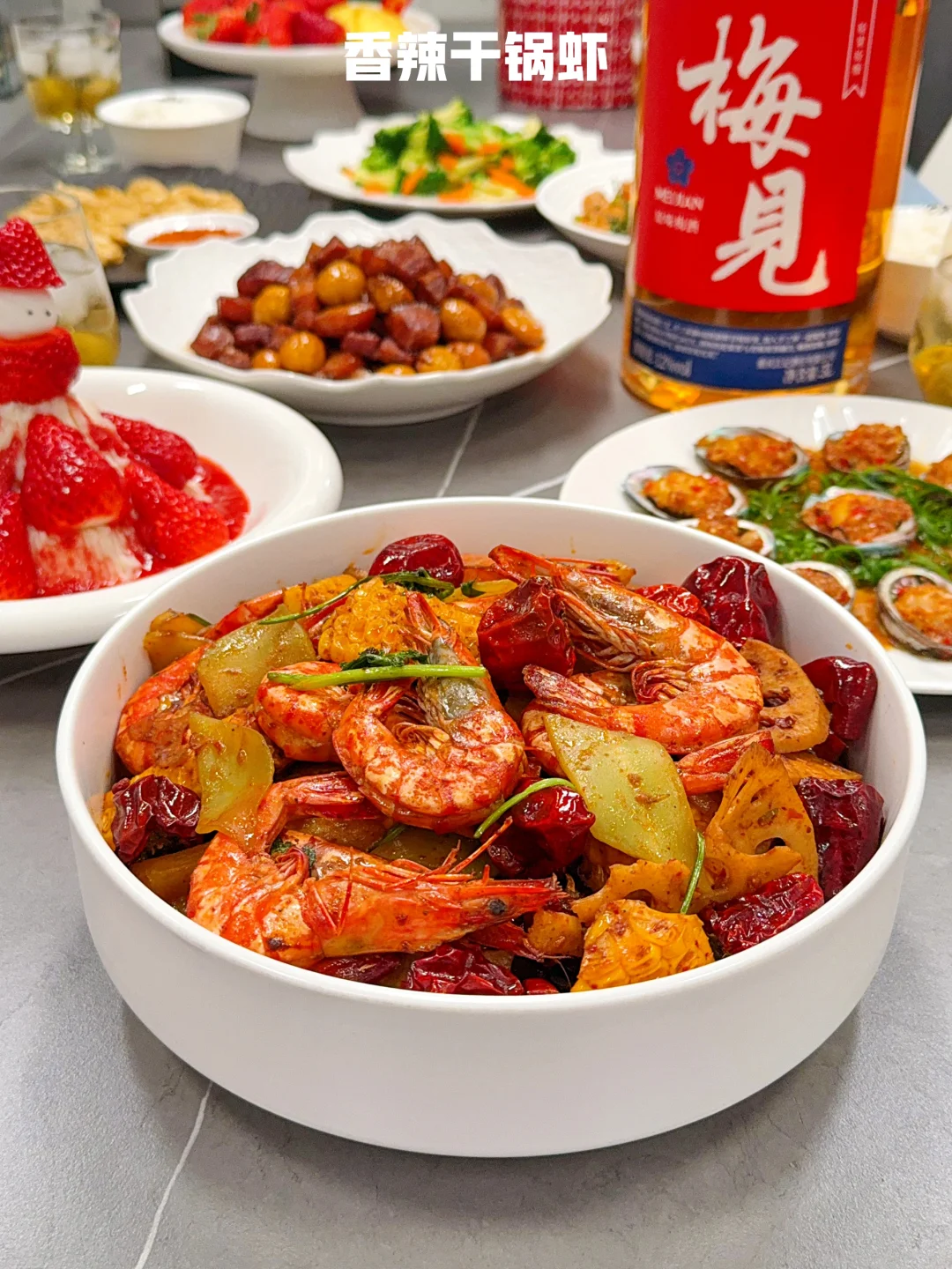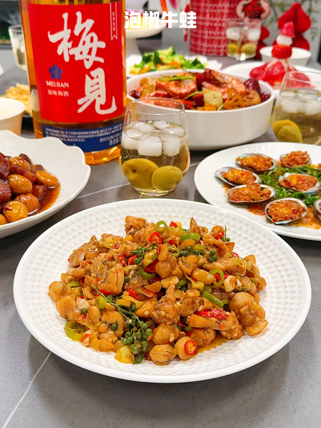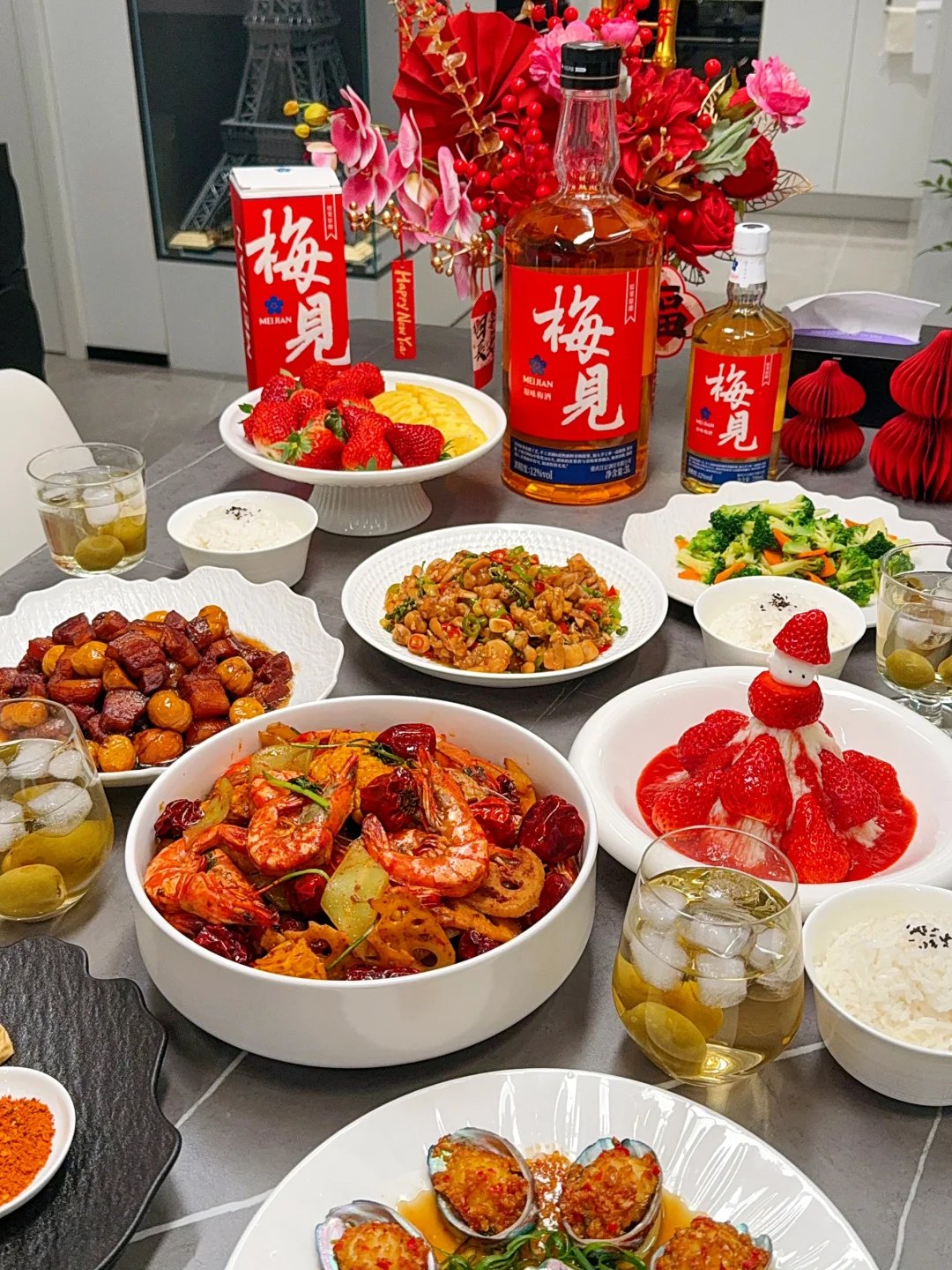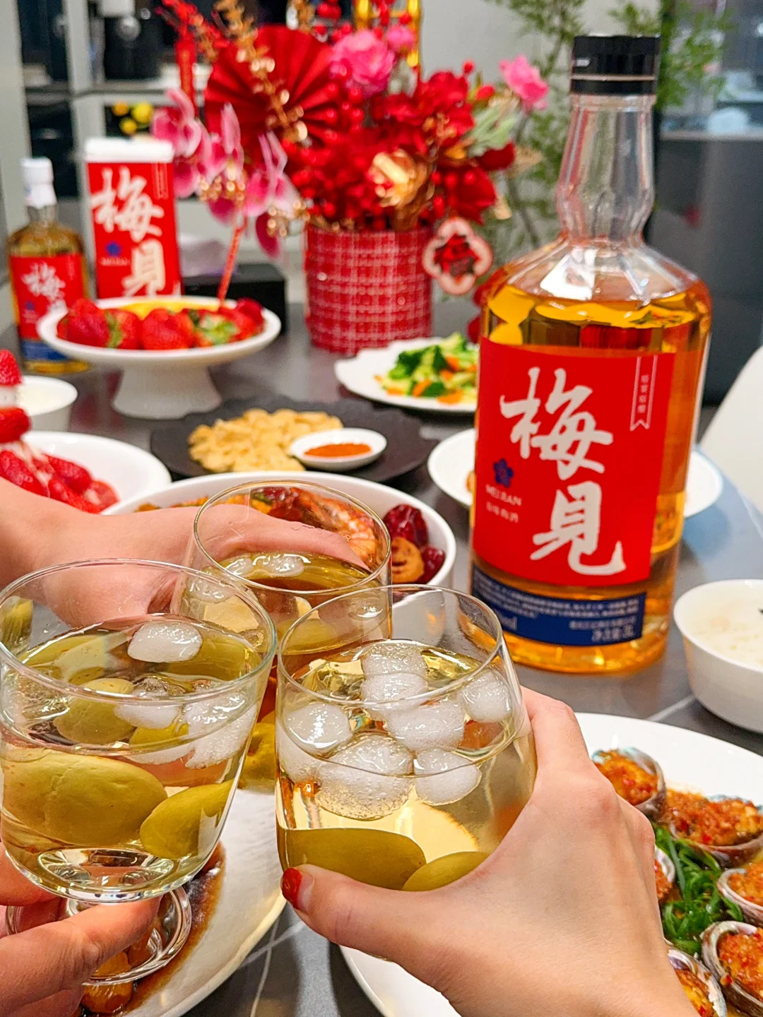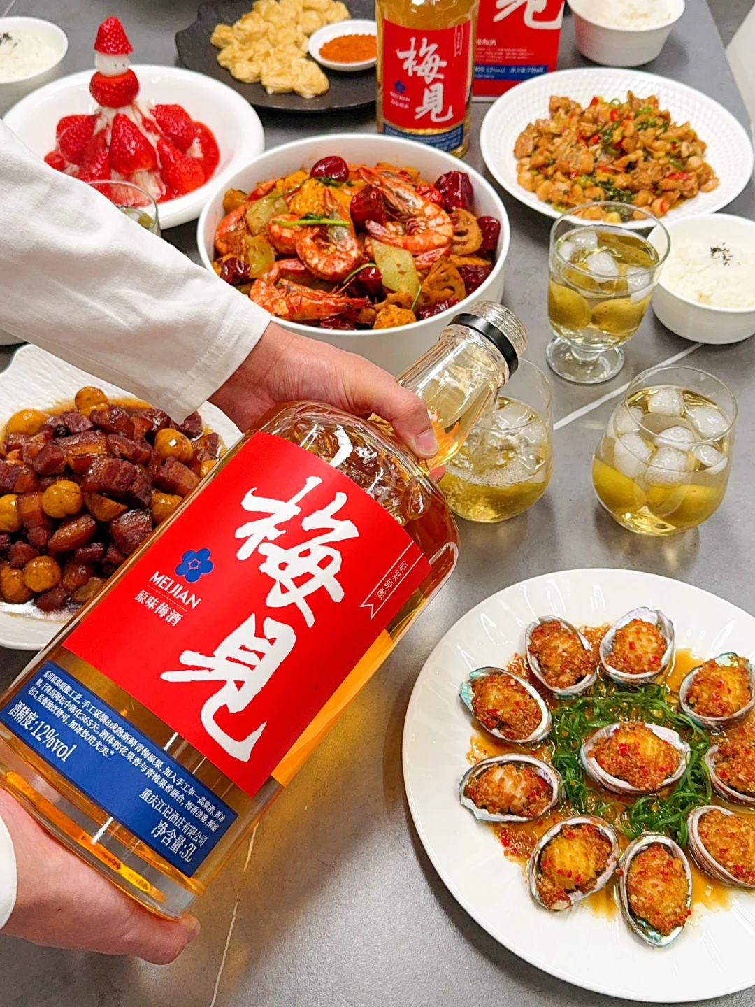 [集美R] 正好趁着今天的这桌家宴,试试今年准备的新年酒~害怕大家喝不到一起,就选了这个梅见原果原酿的青梅酒,度数不高,正好全家可以一起喝🍻