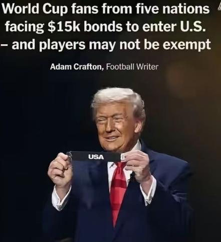 见过不要脸的,没见过这么不要脸的! 特朗普现在直接把手伸到世界杯上面,摆明了就是借着比赛公开要钱。 二零二六年的世界杯马上就要办,全世界球迷都等着看球赛。美国偏偏在这个时候,推出了一个签证押金的规定。 想来美国看比赛,不管是球员还是普通看球的人,都要先交钱。 说白了,特朗普这波操作就是明抢,借着2026年美加墨世界杯的热度,把全世界球迷和球员都当成了捞钱的工具,吃相难看到了极点。 距离2026年世界杯开赛也就几个月时间,全世界的球迷都在盼着这场足球盛宴,毕竟这是世界杯扩军到48支球队后的首届比赛,看点本来就多。 可谁能想到,作为主办国之一的美国,不琢磨着把赛事办好,反而在签证上动起了歪心思,特朗普政府直接推出了签证押金规定,简直是趁火打劫。 我感觉这规定离谱到不行,据说来自阿尔及利亚、塞内加尔等5个参赛国的人,不管是球员、教练还是普通球迷,申请赴美签证都要交押金。 成人最少1万美元,最多能到1.5万美元,就连小孩子都得交5000美元,美其名曰防止非法移民,其实就是借着世界杯圈钱。 更让人无语的是,这笔钱得等你看完比赛按期离境,才有可能退回来,至于能不能顺利拿到,谁也说不准。 可能有人觉得,不就一笔押金吗,真想看球的人总会交的,但我想说,这根本不是钱多少的问题,是美国太不讲道理。 要知道,本届世界杯美国本来就占了大便宜,据说104场总赛事里,美国就独占了78场,连决赛、半决赛这些核心场次都全攥在手里,现在还变本加厉地向球迷和球员要钱,这哪里是办赛事,分明是借着世界杯的名头发横财。 其实反过来想,如果世界各国的球迷都硬气一点,联合起来抵制美国主办的这部分世界杯赛事,大家都不去美国看球,那场面想想都解气。 到时候,美国那些耗资巨大建好的足球场,观众席上空空荡荡,连个人影都没有,球员在场上踢球就像自导自演,没有欢呼没有呐喊,这场面得多尴尬。 而且这样一来,美国肯定得赔死,毕竟举办赛事的场地、安保、运营都是巨额投入,没有观众就没有门票收入、没有周边消费,前期的投入全得打水漂。 更重要的是,这种做法肯定会激怒国际足联和其他国家,以后国际上的各类体育赛事,估计没人愿意再放到美国举办了。 说真的,美国这波操作真的是穷慌了不择手段,连世界杯这种全球性的体育盛事都能拿来捞钱,还谈什么“再次伟大”。 想想看,以后不管什么国际活动,只要去美国,就得办签证、交押金,手续麻烦不说,还得先掏一笔钱,谁还愿意去?久而久之,美国只会被全世界孤立,慢慢失去国际上的信任和话语权。 说到底,这笔天价签证押金,收走的不只是球迷和球员的钱,更是全世界对美国办赛的信任,也寒了所有足球爱好者的心,毕竟世界杯的意义,本来是跨越国界的团结和快乐,现在却被美国当成了捞钱的工具,实在让人唏嘘。 以上仅为我个人看法,不代表任何立场,大家觉得美国这波签证押金规定合理吗?欢迎在评论区留下你的观点。