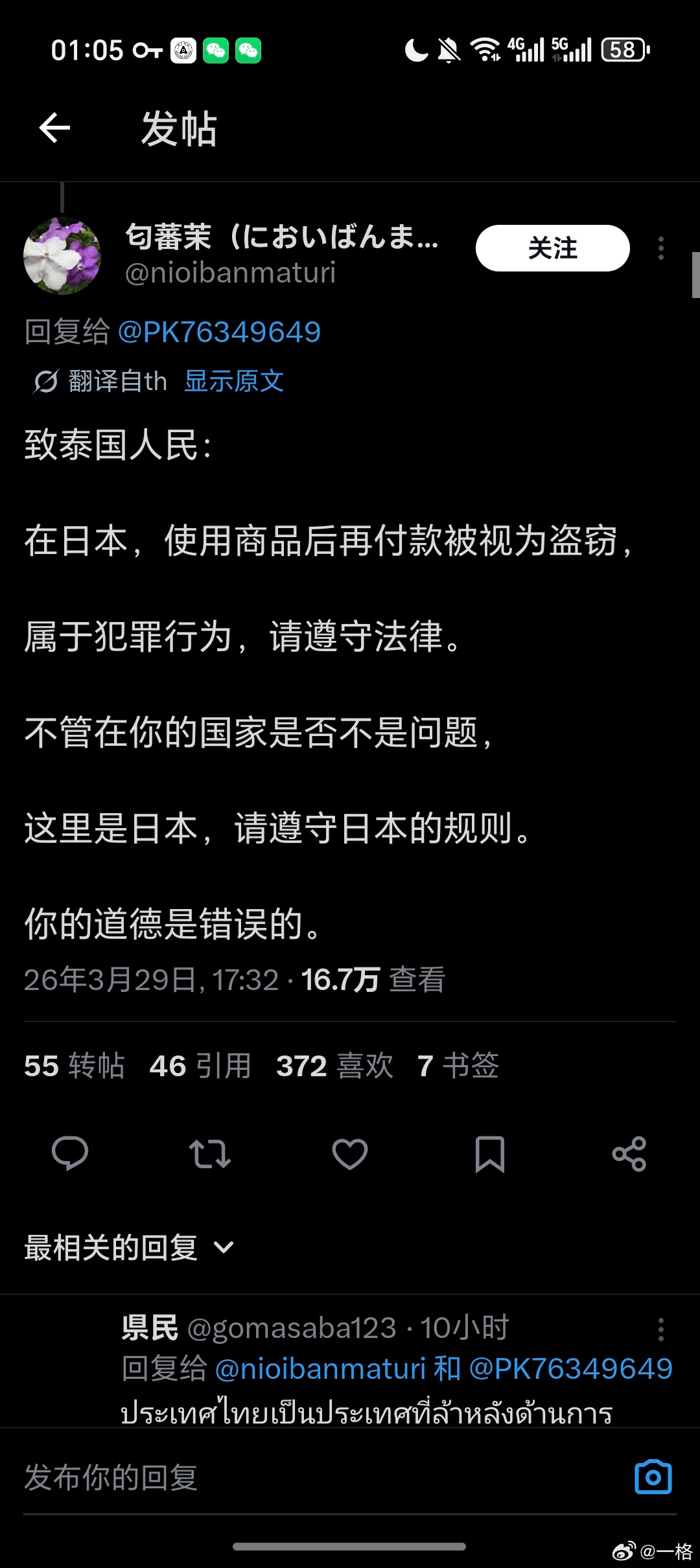 喷了,因为一碗泡面,泰国人跟日本人在网上干起来了。起因是一个泰国游客在便利店买泡面,加完热水后再去买单。视频被日本营销号搬运后热度非常高,日本人这边骂起来了,泰国人看到也感觉不中了(只截两张比较有代表性的),总之两边就扭打起来了。