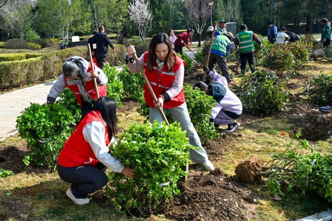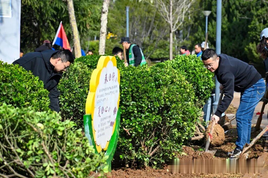 在植树点,市园林绿化中心专家为大家详细讲解植树步骤和技巧后,广大青年志愿者三两结伴、分工协作,有的扶苗定位,有的挥锹培土,有的围堰浇水,每一道工序都细致规范。此次植树活动选用红叶石楠球、大叶黄杨球、小叶黄杨球、紫叶矮樱球、卫矛球等适应性强、观赏性佳的苗木,错落栽植、色彩相映,让广场景观更具层次与活力。铁锹翻动间,泥土的清香扑面而来,欢声笑语在广场上空回荡。