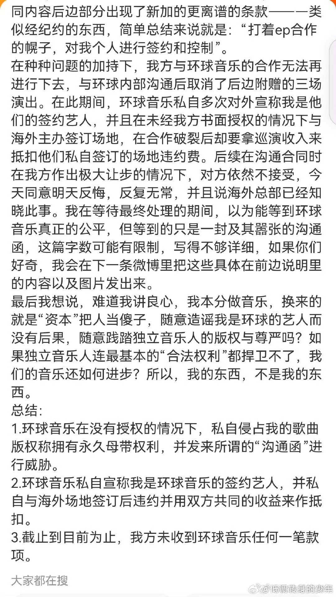 跳楼机原唱实在是忍不下去了《跳楼机》原唱歌手LBI利比,控诉环球音乐中国长期侵占其歌曲版权、强加不平等合同条款、拖欠收益款项等侵权行为,直言“实在忍不下去”,甚至表示可能退出音乐圈。 整理了一晚上!㊗️维权成功!大家的维权意识被李荣浩调动起来了👏👏👏音乐圈这几天有事儿的都抓紧了哈!跳楼机原唱实在是忍不下去了