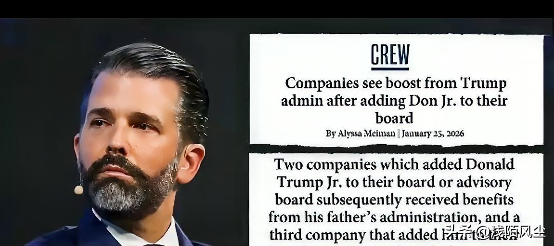 美媒爆料特朗普儿子小唐纳德加入多家公司董事会后,这些企业随即获得其父亲特朗普政府巨额合同或贷款。