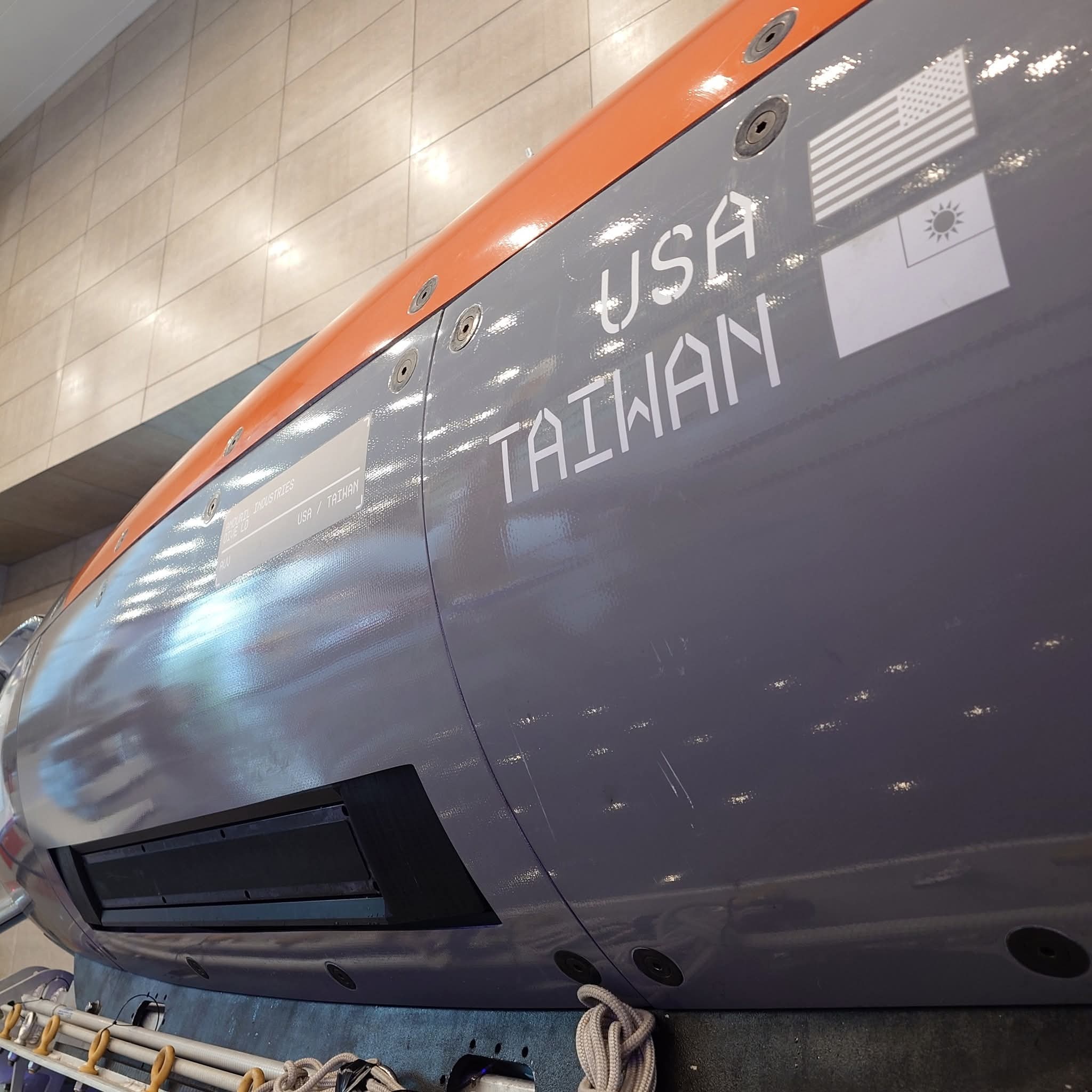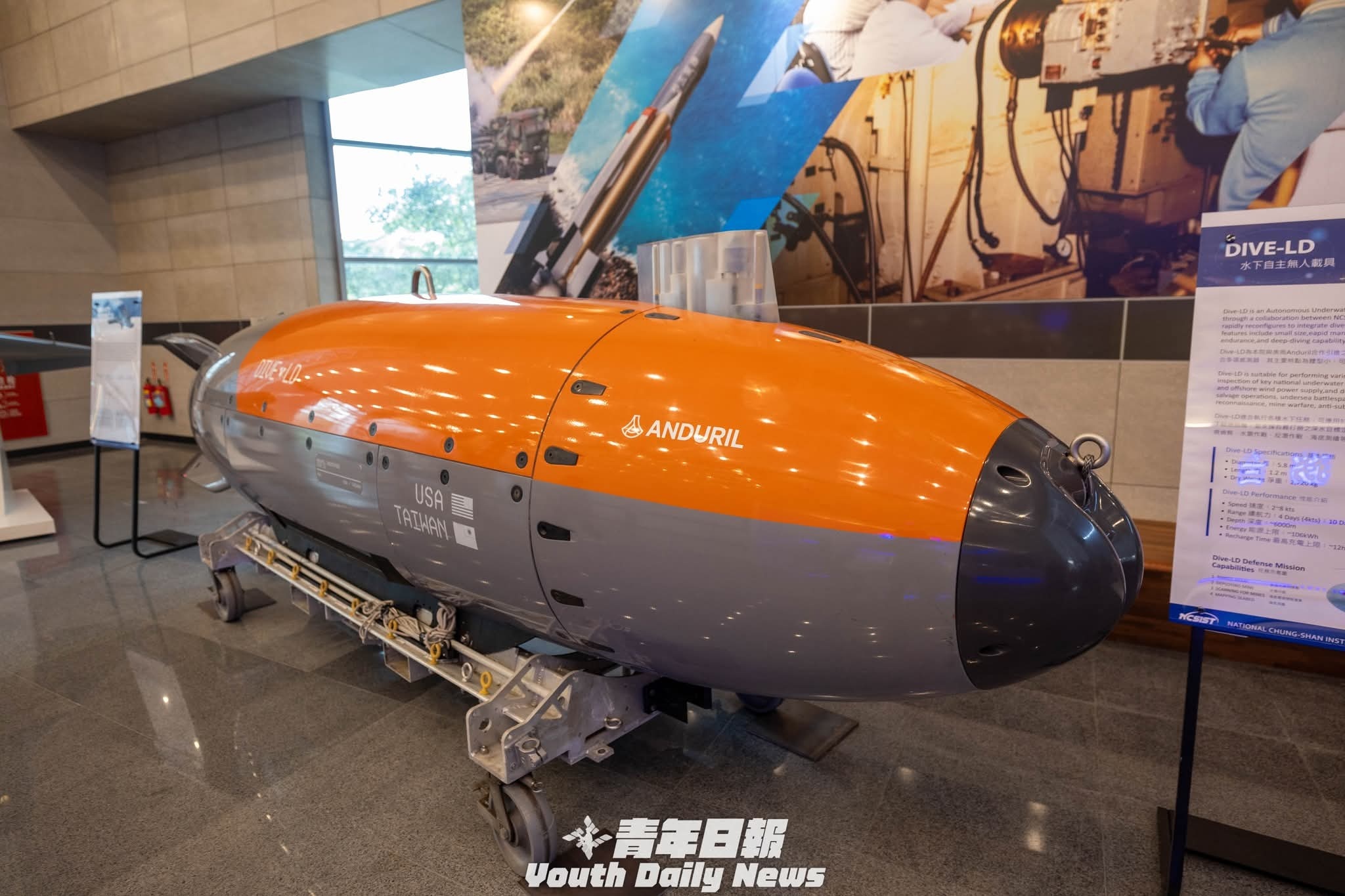 【图1】美国安杜里尔工业公司(Anduril)DIVE-LD无人潜航器艇身的下侧,可以清楚的看见侧扫声纳,【图2】昨天下午窜访中国台湾的美国参议院代表团参观台“中科院”展示馆。 在展品中的这艘 DIVE-LD已在今年初在台湾进行过试验性质的水下任务。军事ai新视野