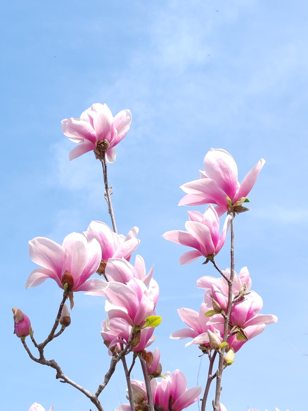 春日生活打卡季玉兰花的天空。春分天暖,玉兰花飞。凌空展姿,百态妩媚。淡香飘远,和