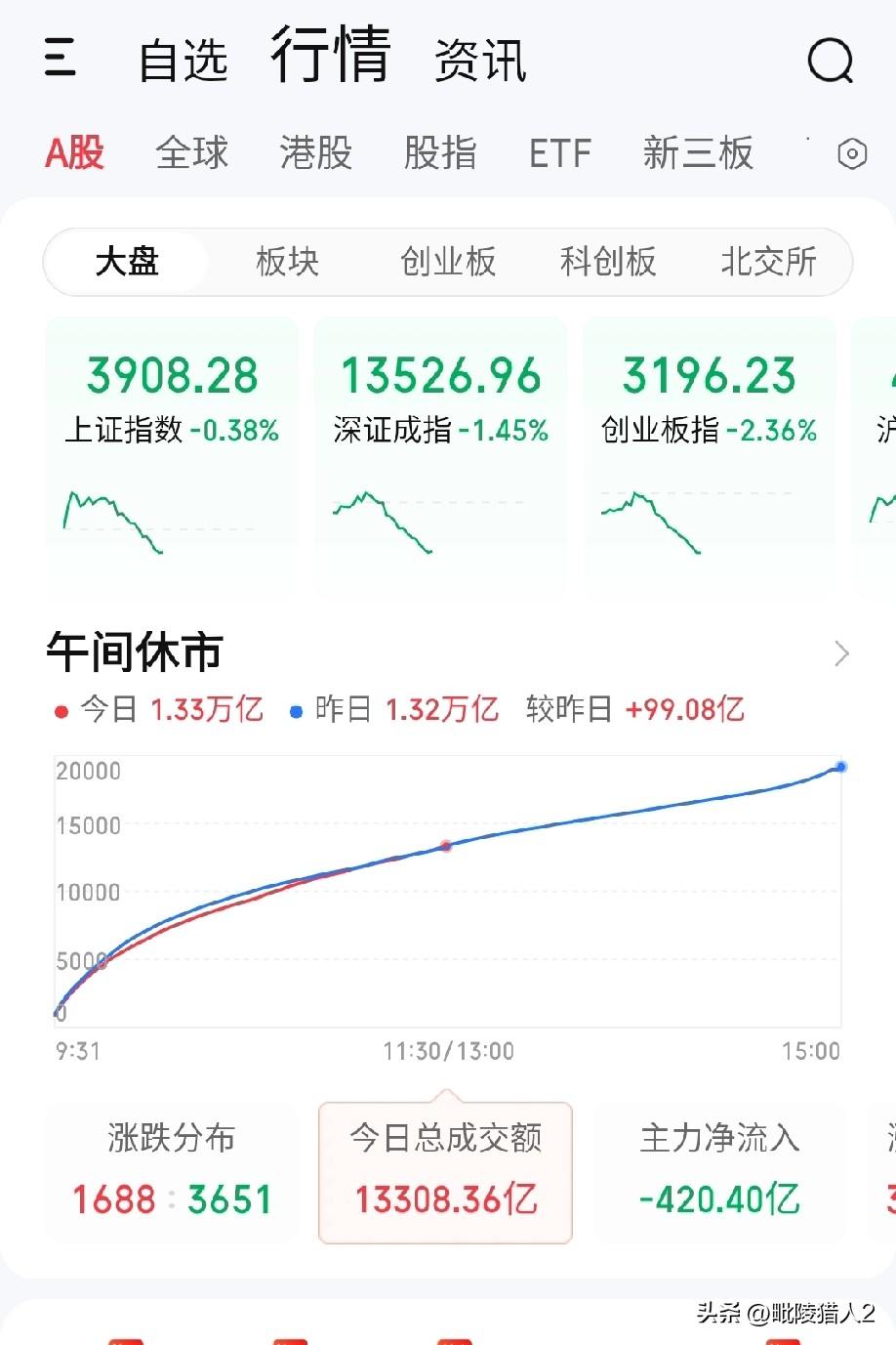 以上午的盘面看,市场情绪还是相对稳定的,低迷的成交量说明并未出现恐慌盘,而是观望情绪更浓一点。
