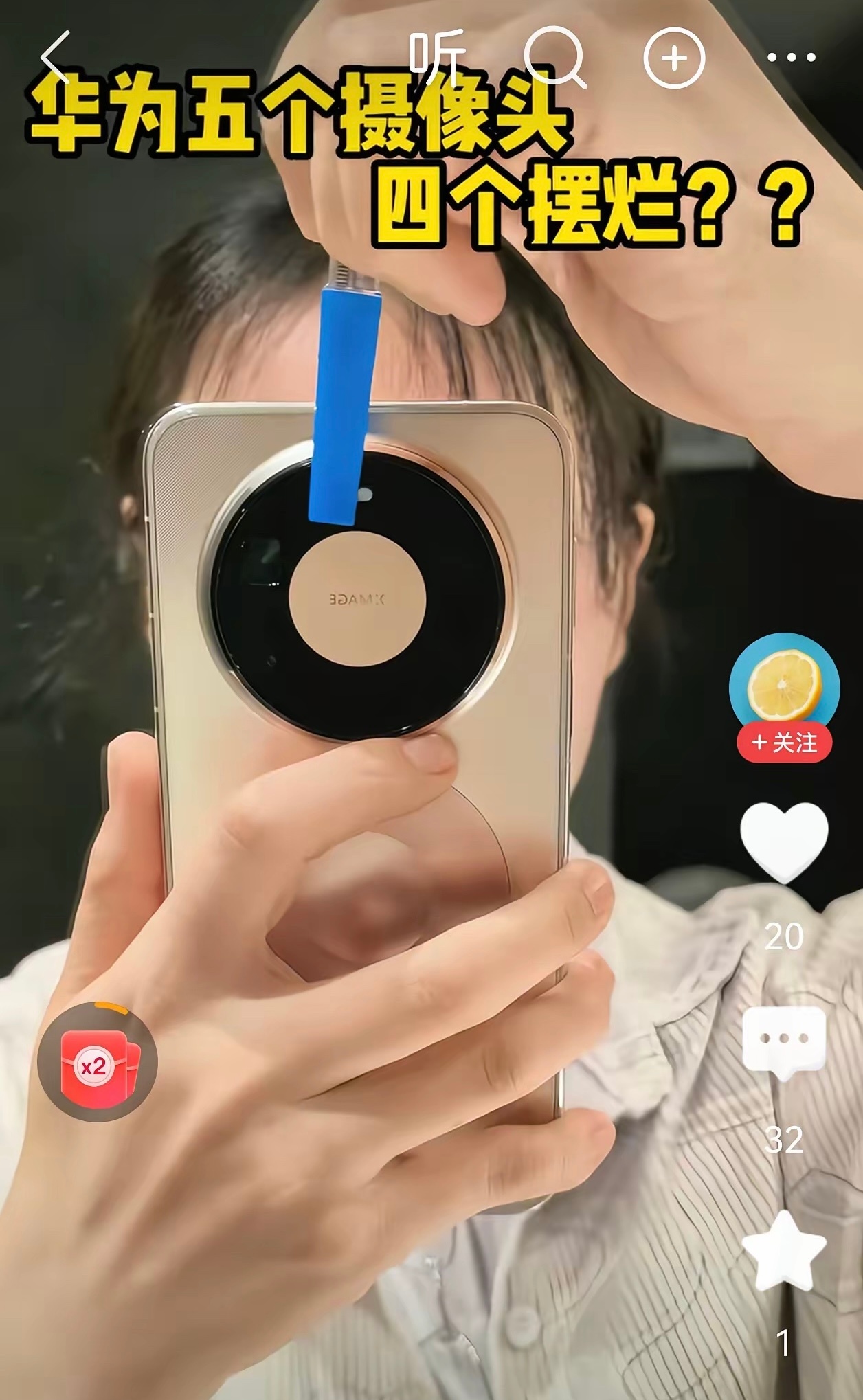 最近黑子们都是这样黑华为的,我都服了没点常识就出来猛喷丢不丢人啊,还五个摄像头四个摆烂醉了,来我给你普及普及,就比如你用手机挡住了你的脸,可你手还能拿着笔挡住摄像是一个逻辑,这几个摄像头有它不同的功能和分工,不知道是真无知还是无脑醉了!
