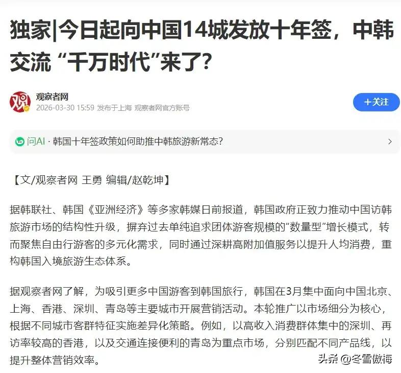 咦?小西八不傲娇了?想念中国游客了?可能中国人现在对你们也没有啥兴趣了。 你们能有啥可以提供给我们的?文化古迹我们一个小县城可能都吊打整个韩国。名山大川韩国🇰🇷有吗?以前还有点小家电,现在国内啥没有?服装?化妆品?医美? 感觉除了一点异域风情,事实上也没有感觉出来[偷笑]给我一个再去韩国的理由。 点右上角关注我,我们一起去看这个魔幻的世界