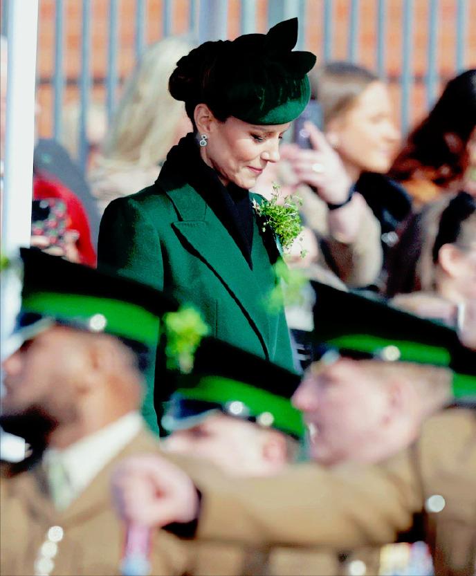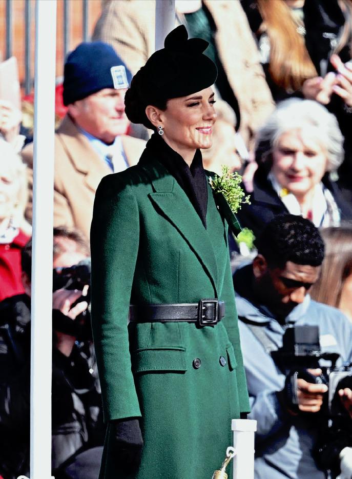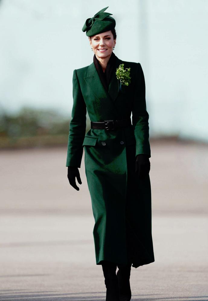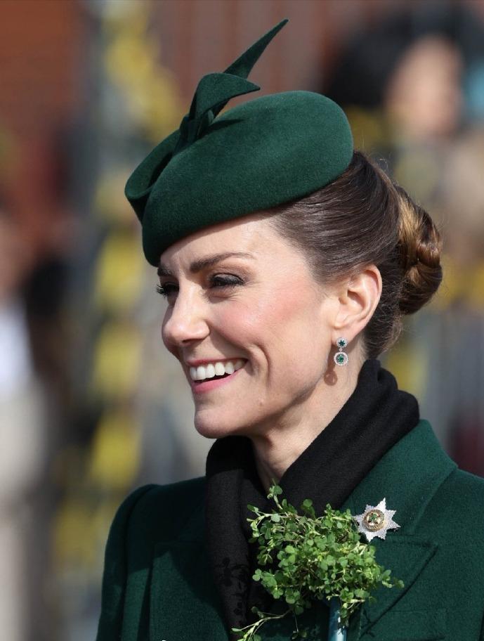 补一组凯特王妃的美照! 这组照片是3月17日,凯特王妃以爱尔兰卫队上校的身份,独自出席在奥尔德肖特蒙斯兵营举行的圣帕特里克节游行活动时,被火眼金睛的摄影师所抓拍到的一组照片。 照片里的凯特王妃虽然和以往参加这项活动时一样,依旧是一身森林绿的大衣造型。 但是比起过去十几年,以配偶身份陪着丈夫威廉王子亮相时,如今的凯特王妃真的瘦了好多好多。 不过这组照片里的凯特王妃太让人惊艳了,无论是照下,还是那光影照射在她身上的样子,真是自带光芒,大片感十足。 尤其是那灿烂的笑容,阳光治愈,充满活力,这样的凯特王妃实在是美得不要不要的。