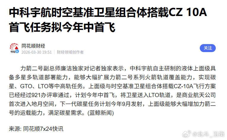 10A的首飞比预想的更早,并且不搭载梦舟飞船,而是搭载时空基准卫星和中科宇航的力巡一号上面级组合体去LTO?