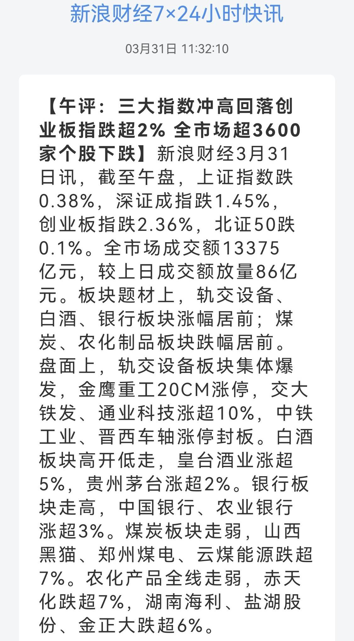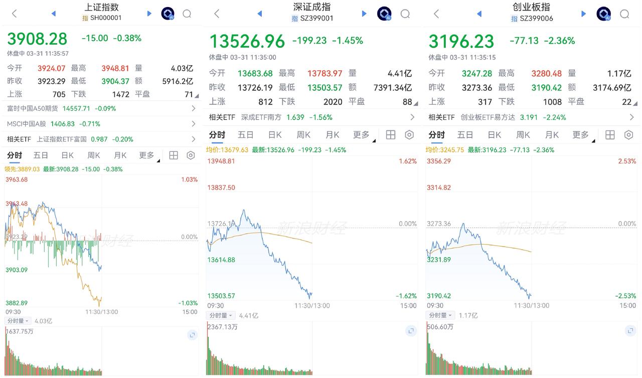 午盘印象(3月31日) 程序化卖出 AI硬件补跌