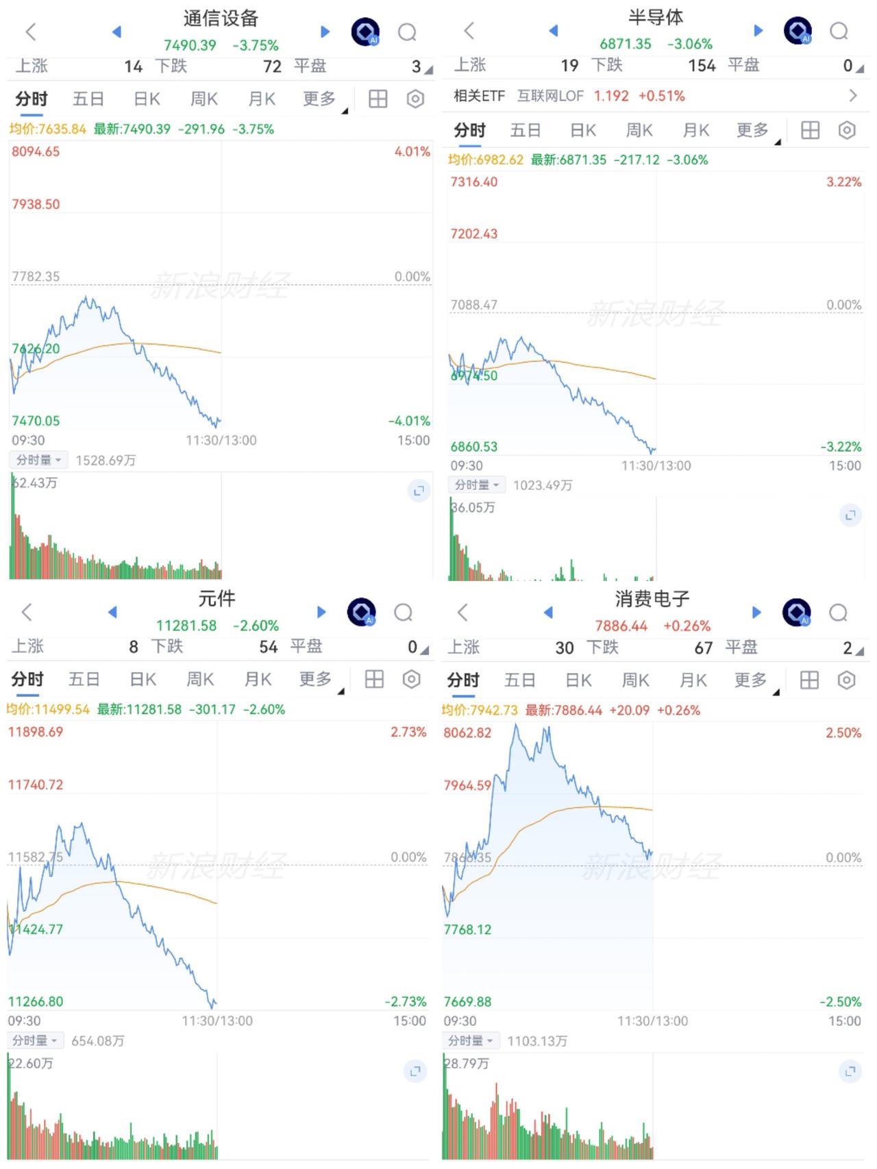 跌幅前列:AI硬件 煤炭 化工农化 电池储能