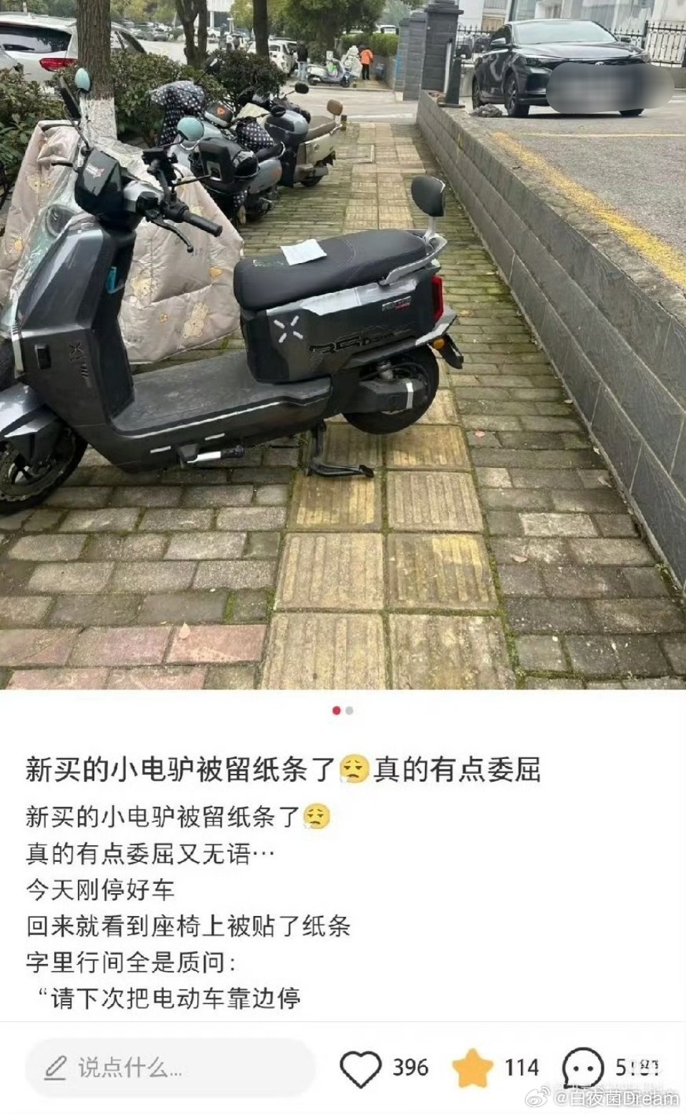 “被留纸条了,以后停车都有心理阴影了”