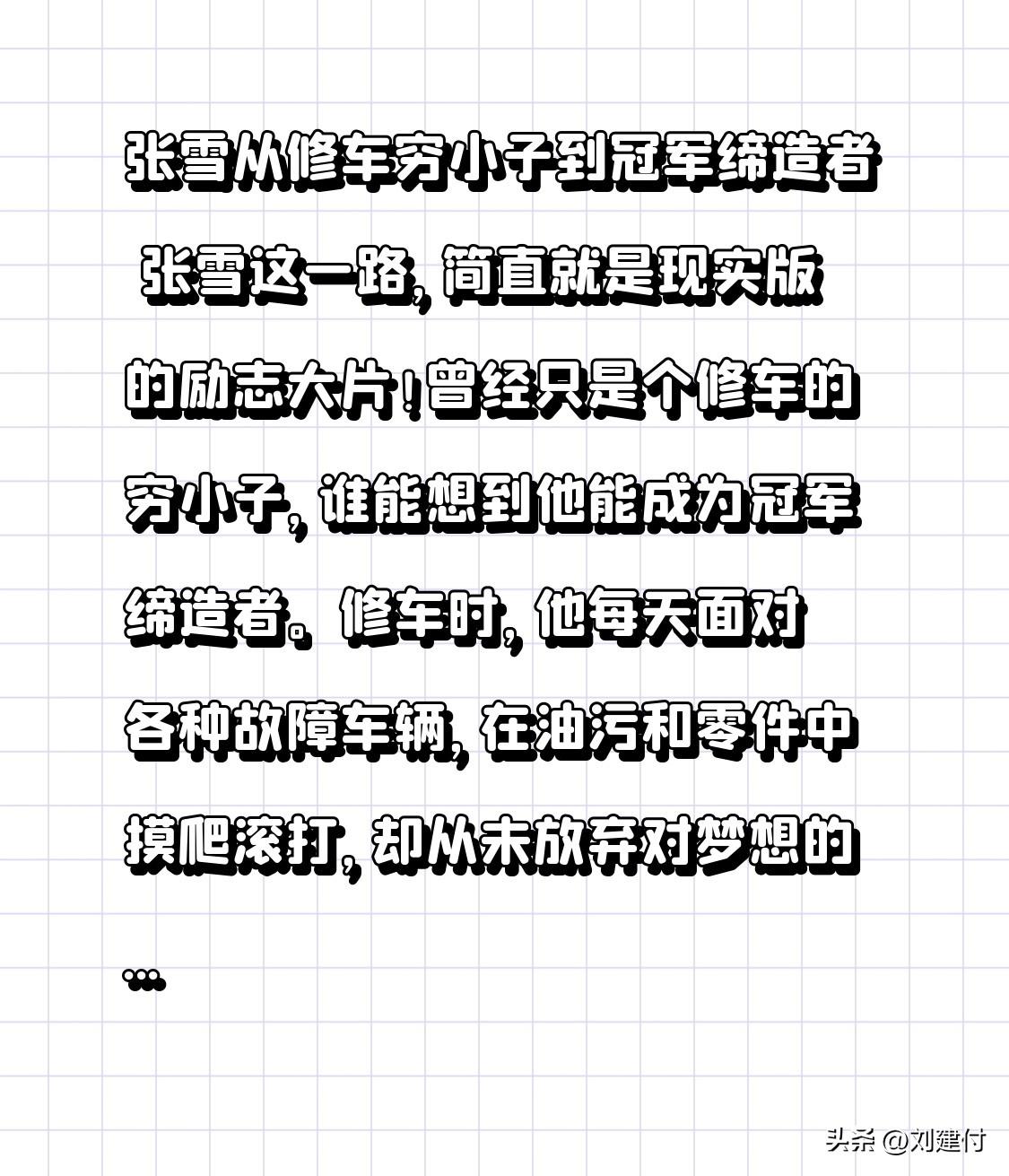 张雪的故事告诉我们,只要怀揣梦想并为之拼搏,咸鱼也能翻身!