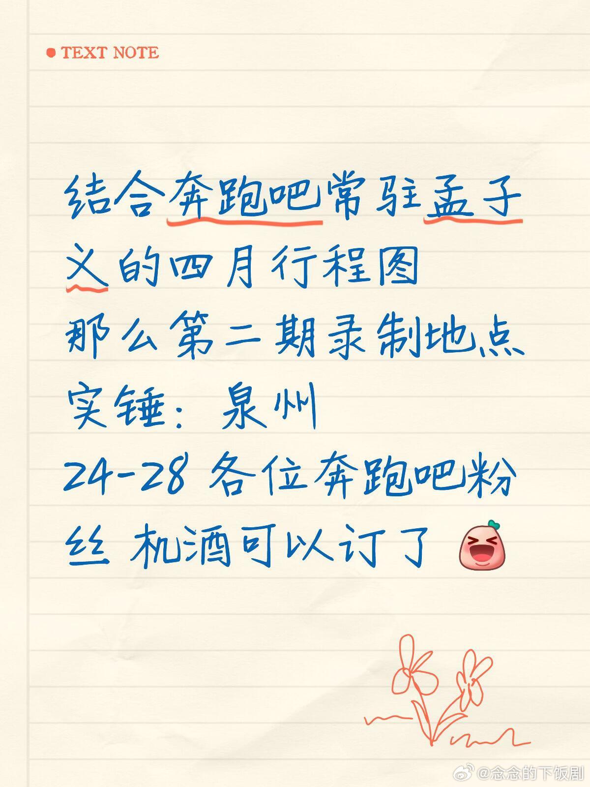 看来五一前就要热闹了结合奔跑吧常驻孟子义的四月行程图那么第二期录制地点实锤:泉州