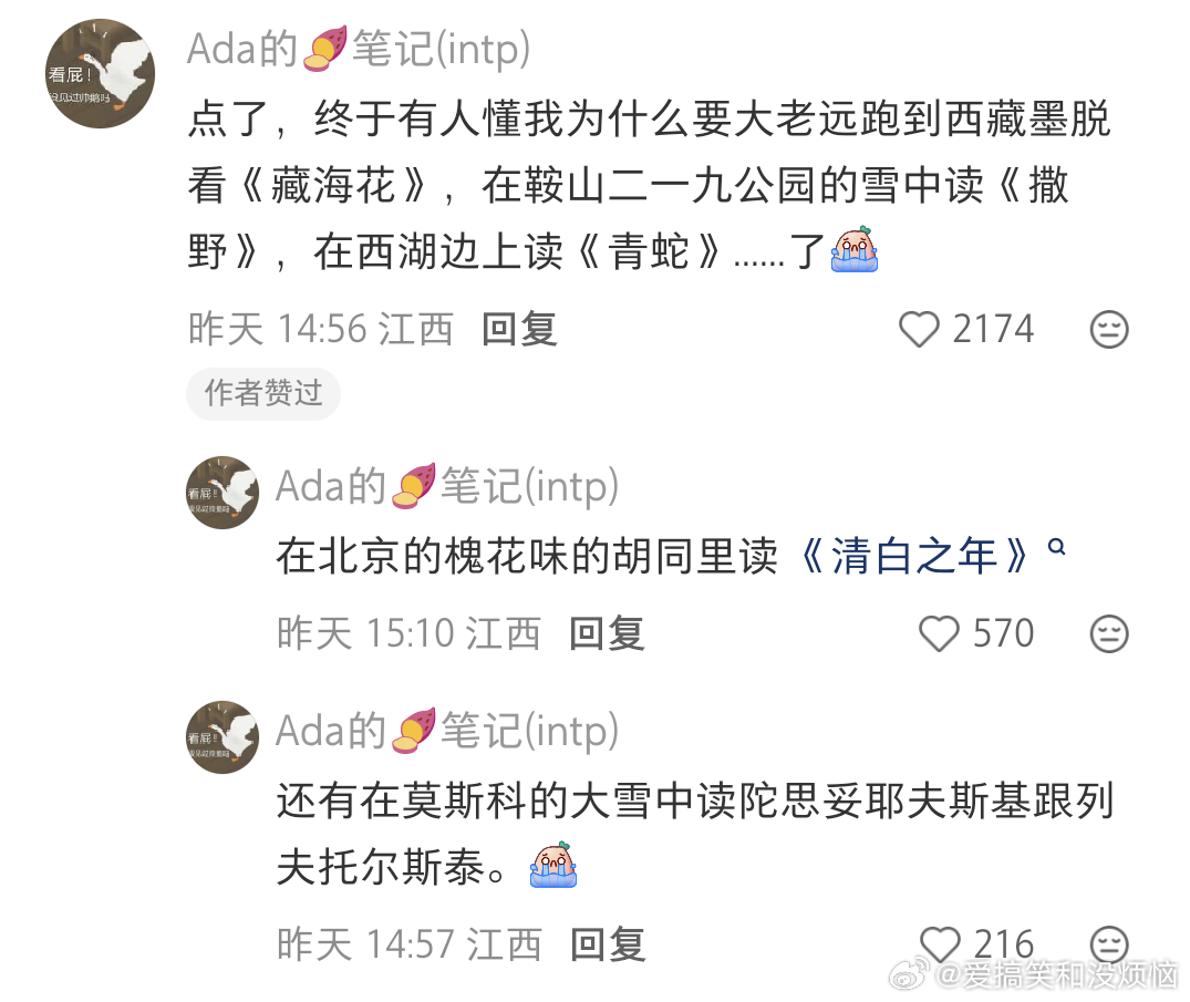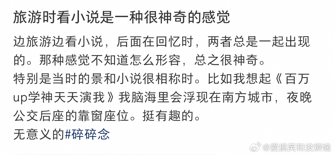 旅游时看小说是一种很神奇的感觉学到了,下次旅行一定把书拿上