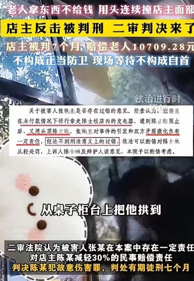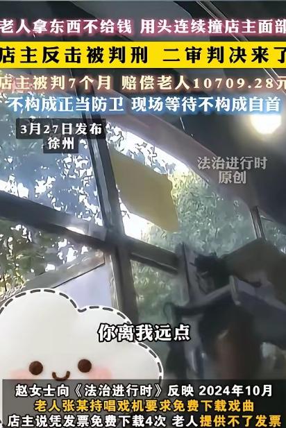 悲剧还是发生了!!江苏徐州,一老人让店主给免费下载歌,但他不是在这家店买的唱机,被老板拒绝,临走偷拿走店里的充电器。老板让他给钱,他倚老卖老,用头连续顶撞店主面部,还骂店主刚过世的母亲,店主忍不住反击,至老人轻伤二级。店主因故意伤害罪被判刑7个月,赔偿老人10709.28元。法院:不构成正当防卫。 2024 年 10 月,江苏徐州一家小电器店,店主陈某像往常一样守着店铺。82 岁的张某拿着唱戏机走进店里,开口就要求免费下载戏曲。陈某按店铺规矩说明,只有在本店购买且持有发票的顾客,才能享受免费下载服务。张某拿不出任何凭证,被拒绝后没有离开,转而盯上了柜台上的充电器。 陈某拿出通用充电器让张某试用,张某确认能用后,拿起充电器转身就走,全程没有提付款的事。陈某以为老人年纪大忘了,上前客气提醒,充电器还没付钱。就是这句正常的提醒,彻底激怒了张某。 张某当场翻脸,对着陈某破口大骂,言语不堪入耳。更过分的是,他专门辱骂陈某刚过世不久、年近九十的母亲,句句戳中陈某的软肋。陈某气得浑身发抖,还没来得及理论,张某突然低头,用脑袋狠狠撞击陈某面部,连续撞了好几下。 被辱骂至亲又遭连续殴打,陈某的情绪彻底失控。他本能地抬手反击,一拳打在张某脸上,随后被路过的路人及时拉开。这场冲突很快结束,但后果已经无法挽回。 张某被 120 紧急送往医院,经法医鉴定,鼻骨骨折构成轻伤二级。陈某则被警方当场带走,从原本被欺负的受害者,变成了故意伤害案的犯罪嫌疑人微博。 一审法院审理后认为,陈某的反击行为造成他人轻伤二级,构成故意伤害罪,判处有期徒刑十个月。陈某的家属无法接受这个结果,他们觉得陈某是在被辱骂、被攻击后才还手,明明是正当防卫,怎么反而要坐牢。 他们连夜凑钱请律师上诉,希望二审法院能还陈某一个公道。二审法庭上,律师详细陈述了案件起因,强调张某存在未付款拿物、辱骂他人、主动撞击等严重过错,陈某的反击是忍无可忍的本能反应。 二审法院经过审理,认可了张某在本案中的明显过错,据此对陈某减轻 30% 的民事赔偿责任。但在核心的正当防卫认定上,法院依然没有支持陈某的主张。 法院认为,正当防卫必须针对正在进行的不法侵害,且反击手段不能明显超过必要限度。张某虽有辱骂和撞击行为,但攻击手段未达到危及生命的严重程度。陈某的反击直接造成张某轻伤二级,在手段强度和后果上,都超出了制止侵害的合理范围,因此不构成正当防卫。 最终,二审法院改判陈某有期徒刑七个月,赔偿张某各项损失共计 10709.28 元。这个判决结果,让很多人感到不解和委屈,也引发了公众对正当防卫边界的激烈讨论微博。 类似的老人与店主冲突案件,近年来并不少见。海南曾发生一起七旬老人为保护被掐住脖子的孙子,持刀砍伤施暴者致轻伤的案件,最终被认定为正当防卫,检察院撤诉。两起案件结果截然不同,凸显了正当防卫认定在实践中的复杂性。 法律对正当防卫的认定,有着严格的标准。不仅要看侵害是否正在进行,还要考量双方力量对比、侵害手段、防卫意图、损害后果等多个因素。在徐州这起案件中,法院正是基于这些因素综合判断,才得出了不构成正当防卫的结论中华人民共和国最高人民法院。 这起案件的判决,不是对不法行为的纵容,而是对法律边界的明确。它提醒每一个人,面对不法侵害时,反击必须保持在合理限度内。一旦超出必要范围,即便起因是对方有错,也可能要承担法律责任。 从店主陈某的角度看,他的遭遇令人同情。被辱骂至亲、被人身攻击,换作任何人都难以保持冷静。但法律的理性,在于不被情绪左右,而是严格依据规则判断行为性质。 这起案件也给所有人敲响了警钟。在日常生活中,遇到类似纠纷,优先选择报警、寻求第三方调解等合法途径解决,远比冲动反击更稳妥。一时的情绪失控,可能换来漫长的牢狱之灾和沉重的经济赔偿。 法律既要保护公民的合法权益,也要维护社会的公平秩序。正当防卫是法律赋予公民的权利,但权利的行使必须在法律框架内。只有清晰界定防卫与互殴、防卫过当的边界,才能既不让守法者受委屈,也不让违法者钻空子中华人民共和国最高人民法院。 这起发生在徐州的悲剧,看似是一起普通的街头冲突,实则折射出法律与情理、个人情绪与社会规则之间的复杂关系。它让我们不得不思考,当情理与法律发生碰撞时,我们该如何选择? 当自身权益受到侵害时,又该如何在法律允许的范围内保护自己?