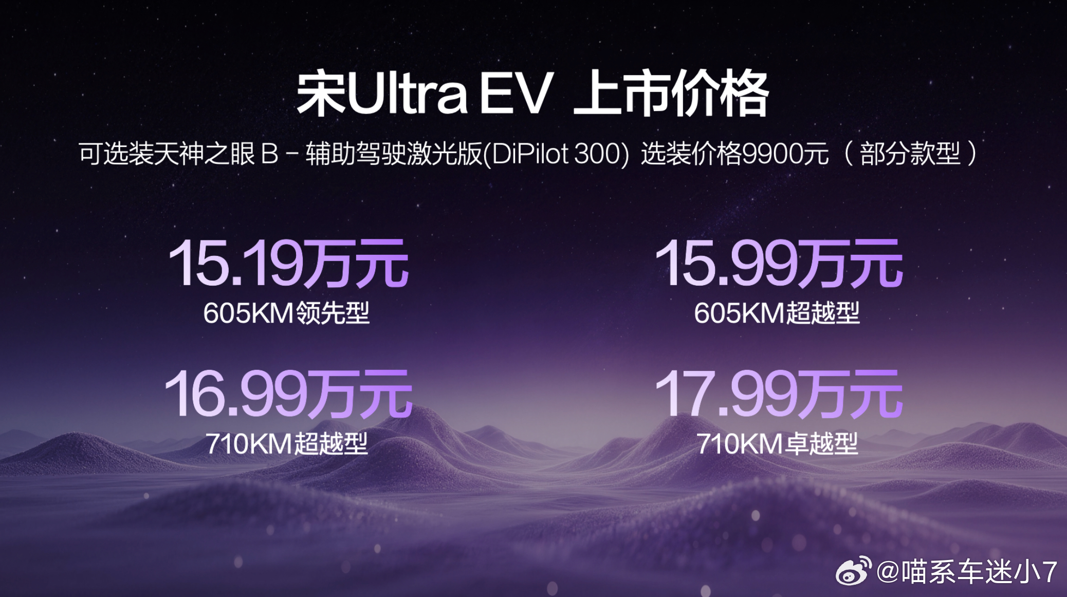 整体看下来,这车技术够硬、配置够全、价格也实在,说是2026年很值得一看的家用纯电SUV,一点不夸张。宋Ultra全系标配闪充15.19万起宋Ultra引领B级SUV进入闪充时代