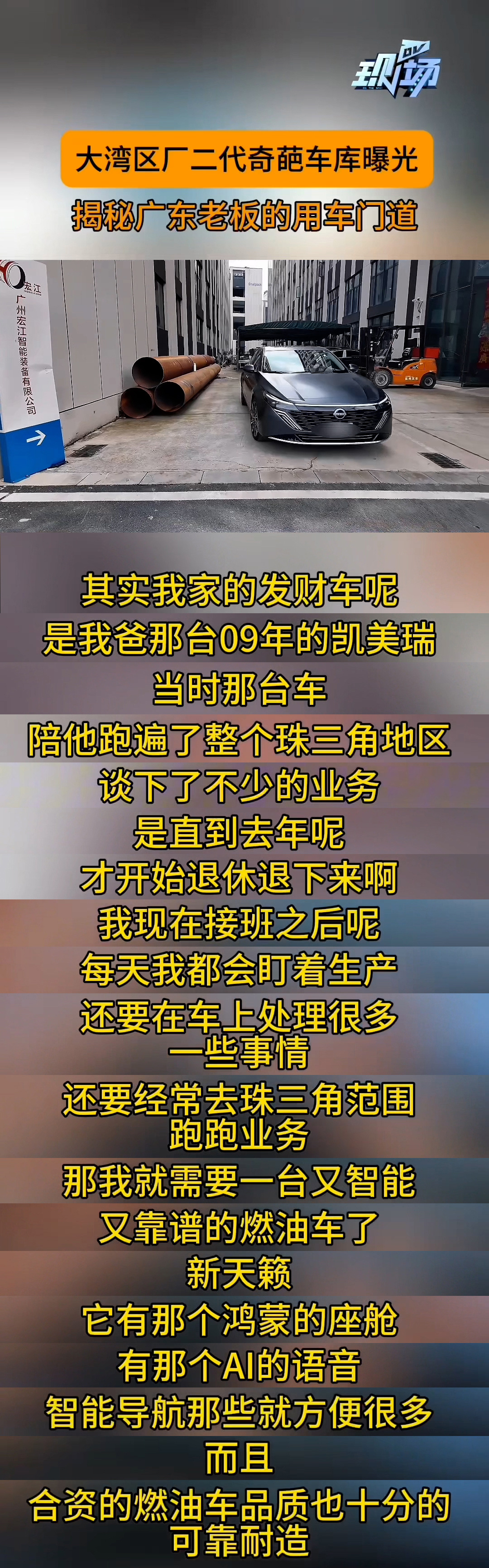 就像增城这位做实业的厂二代,车库里停着有迈巴赫、保时捷,平时开得最多的,却是一台东风日产天籁。很多人不理解,其实广东做实业的人,都懂“车是干事业的伙计,不是供着的祖宗”这个道理。父亲当年开着凯美瑞跑遍珠三角打下家业,靠的就是耐造、靠谱。而东风日产天籁延续了这份可靠,日常开着省油省心,长期用下来故障率低,更不用小心翼翼伺候。现在增城升级成了大湾区智能制造核心区域,吸纳了小鹏汽车等等智能工厂来扎根,作为智能装备企业的厂长,又曾经是广丰供应商,一台智能化更好的日产就是胡先生最好的选择,那无疑就是天籁鸿蒙座舱了