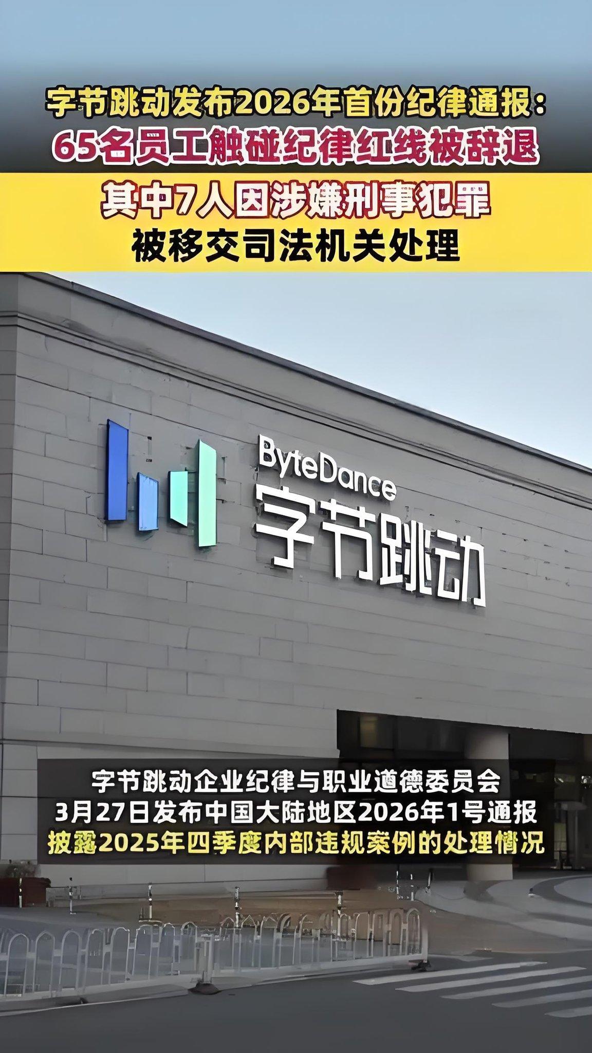 刚看到个消息,字节反腐又送进去7个人。 说实话我现在看到这种新闻都麻了。隔三差五就有一个,上次是谁来着,忘了。 关键你说这些大厂,哪个没有内控部门?流程、审批、风控,整得比谁都严。我朋友之前在那边上班,说走个合同能卡你三天,结果呢?自己人该搞钱还是搞钱。 他就说过一句话我记到现在:制度防不住想伸手的人。 这次7个,涉及电商和抖音业务的,还有外包。通报写得很官方,但我琢磨着,能查出来的肯定只是一小部分吧?那些没被揪出来的,现在估计正偷偷庆幸呢。 唉,反正这种事看多了也就那样。 你们公司有类似的瓜吗?