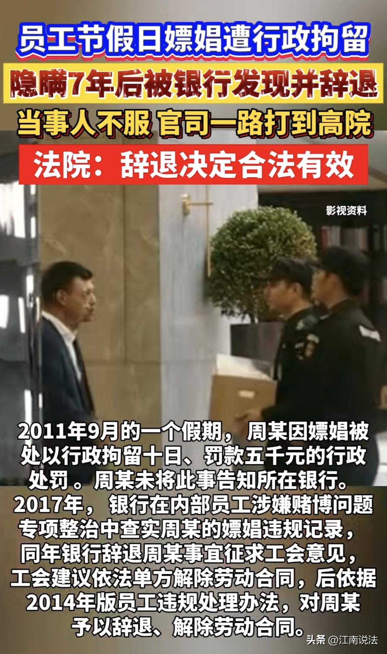 山东,一银行员工假期出门放松,却因嫖娼被警方拘留10天,男子并未将此事上报,本以为会没事,岂料,7年后银行在一次排查中,意外发现男子违法行为,当即将其开除!男子不服,连续3次状告银行,官司打到高院,法院这样判!