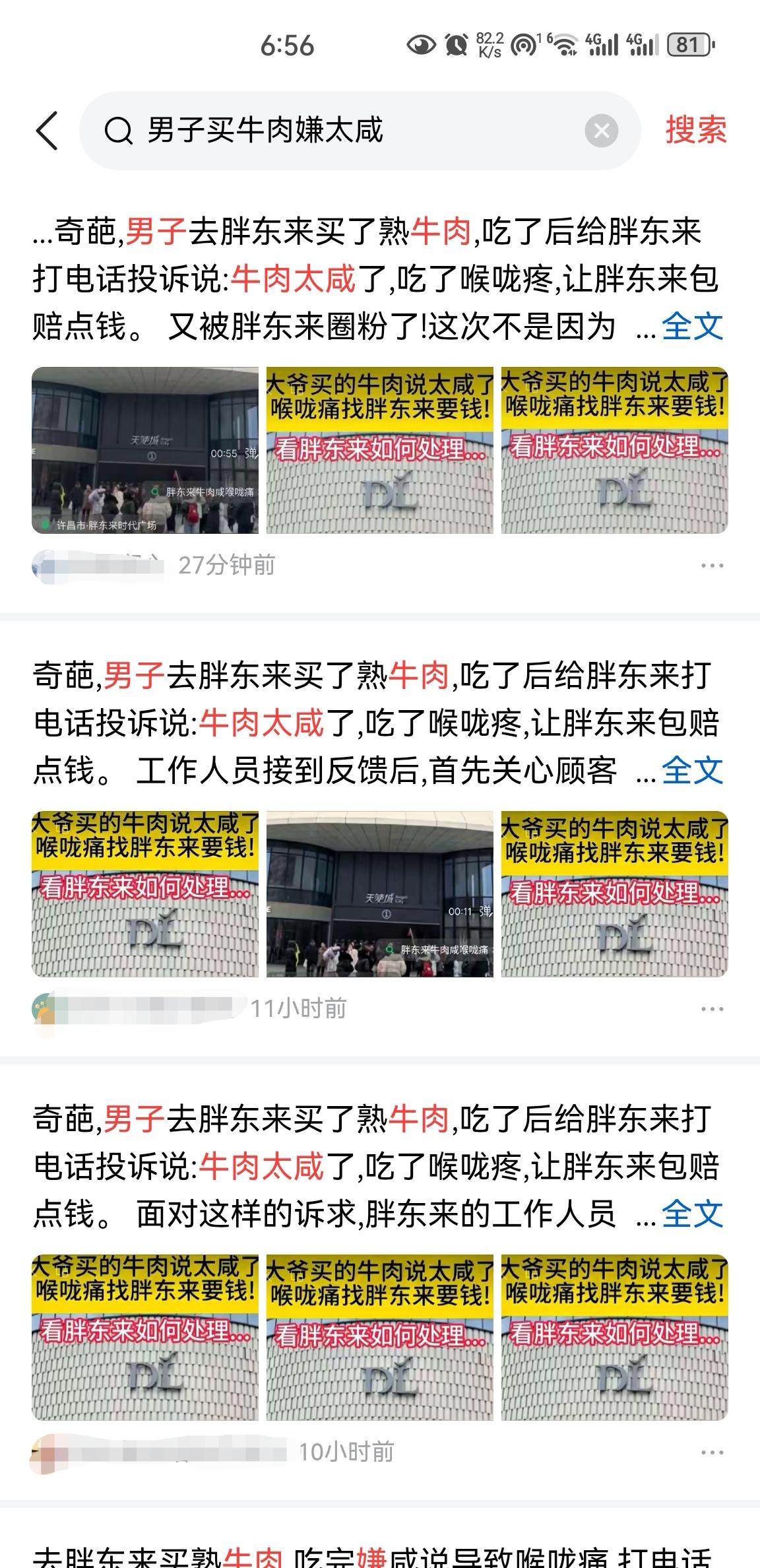 最近又刷到了胖东来的一个感人的小故事,全网的网友都不约而同的在感慨胖东来的服务实在是好,然而我在网上搜索了下,这件事不是在4年前发生的吗,难道今年又再次上演了? 要说胖东来感人的小故事还真不少,据我知道的就有三件,第一件小故事是有个女的在胖东来偷了一块猪肉,然后被抓到了。 胖东来不但放她走了,而且还偷偷的跟踪她,最后得知她家庭条件差,因为母亲生病才偷肉,最后胖东来不但送了各种生活用品,还招她进胖东来当保洁了,并且还把超市报警器给拆除了。 第二个小故事是,有个人在胖东来买了一条鱼,回家做成鱼汤后觉得有点苦,就给胖东来打了电话,胖东来简单的问了下这个人的做法,然后不到半小时胖东来的厨师就把一道鱼汤送到这个人的家里。 第三个小故事是,胖东来为了韭菜没有农药残留,在外面包了一块地,然后荒废了6年时间,等到没有农药残留才开始种韭菜。 这三个小故事确实非常感人,都是很好的诠释了胖东来对顾客的爱,以及完美的服务态度。 最近我刷到的是有个顾客说在胖东来买的牛肉太咸了,吃了喉咙痛,要求赔钱,胖东来说检查身体最重要,想带顾客去医院检查,顾客听了后看讹不到钱就放弃了,最后胖东来还是把牛肉钱给退了。 不过我随手在网上搜索了下这个感人小故事,发现在2022年这件事就已经发生了,跟大家说的内容完全一模一样,我突然就懵了,难道今年又发生了跟2022年一模一样的事情吗。