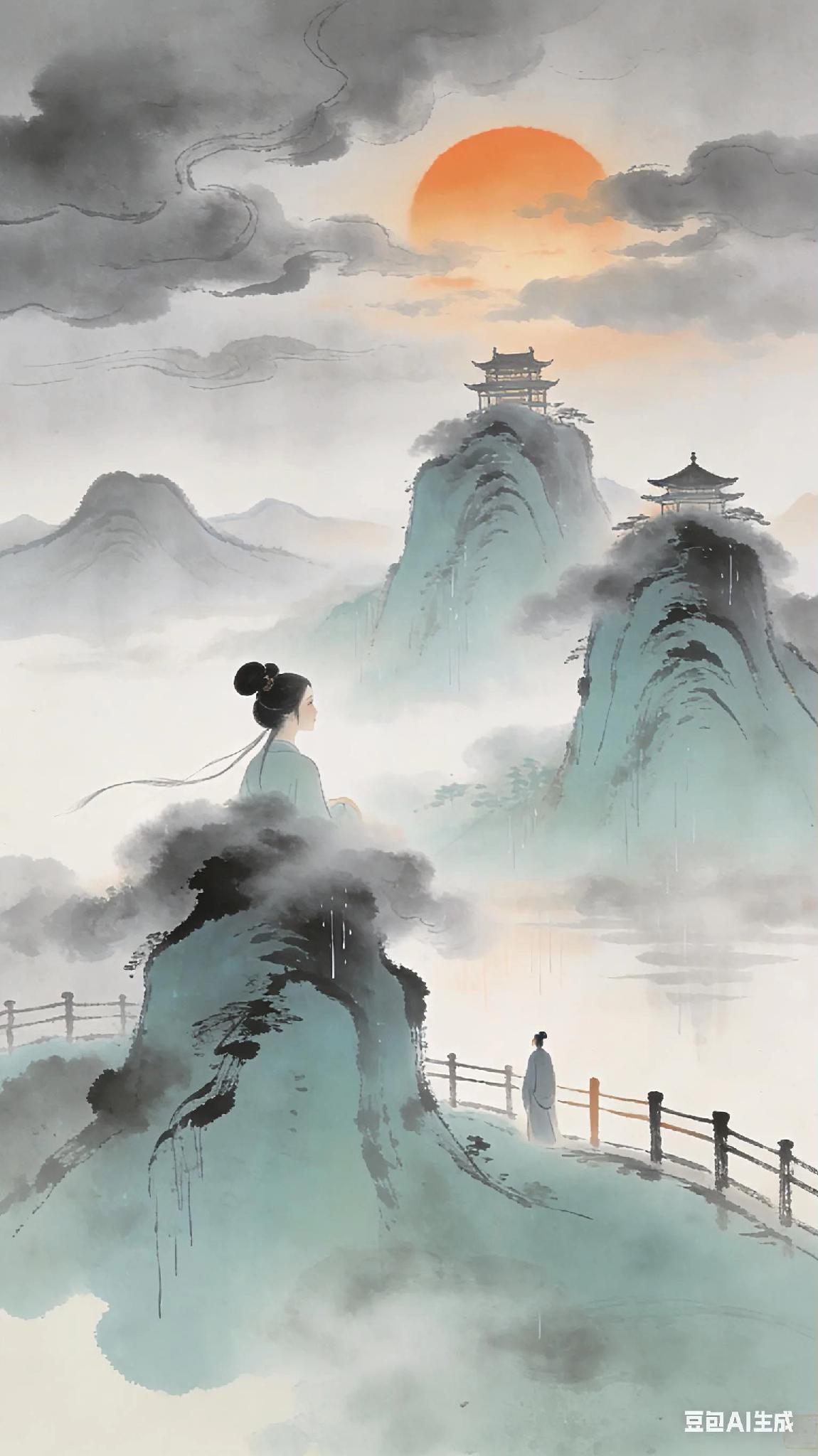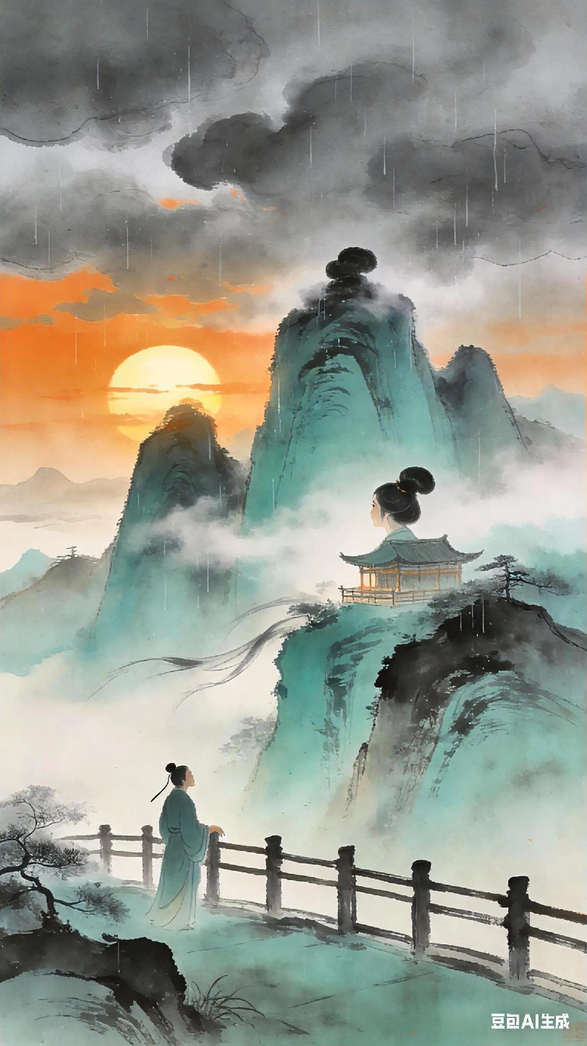 《双调》殿前欢大都西山、唐毅夫 冷云间, 夕阳楼外数峰闲。 等闲不许俗人看, 雨髻烟鬟。 倚西风十二阑, 休长叹。 不多时暮霭风吹, 西山看我, 我看西山。 《大都西山即景》现译: 暮色中,几朵孤云悬在灰蓝天际,夕阳为远处楼阁外的山峰镀上金边。 这些云雾缭绕的青山,像挽着烟雨发髻的仙子,向来不肯轻易向凡夫俗子展露真容。 我倚着西风拍遍十二曲栏杆,忽然释然——何必叹息? 转瞬间晚风就会吹散暮霭,到那时,西山与我终将达成默契的对望:它凝望着我,我凝视着它。 古诗词 你记得最深的一首古诗词是什么 你最喜欢的一句古诗词是什么 诗词美韵分享 每天分享一首诗词