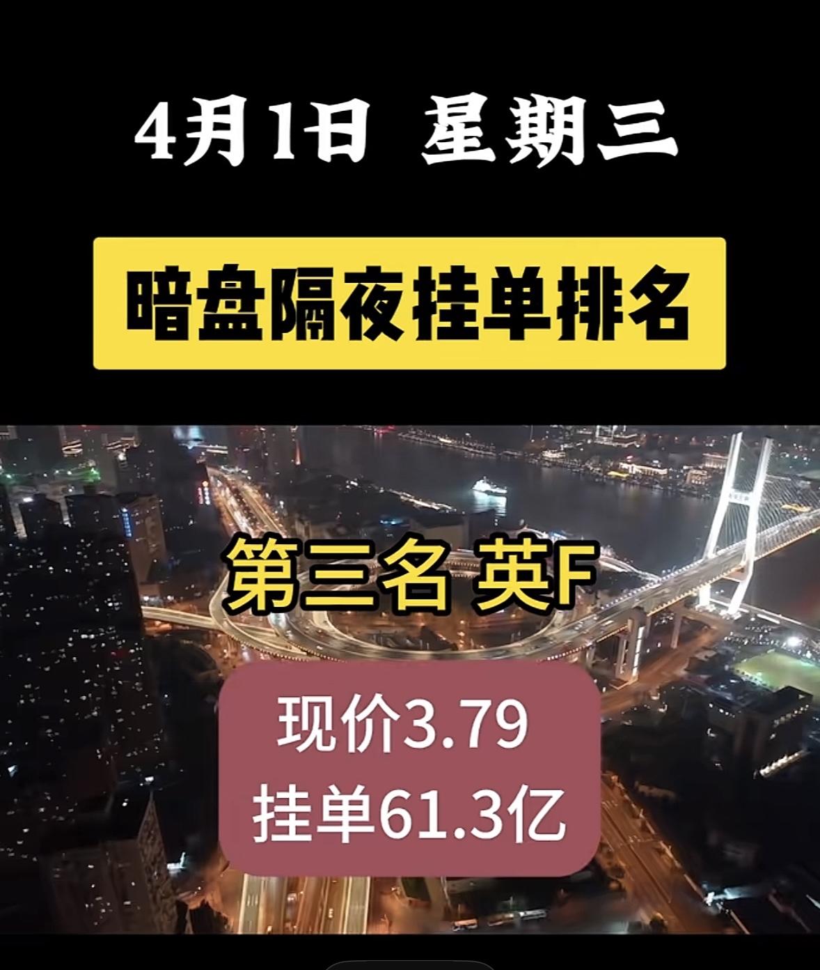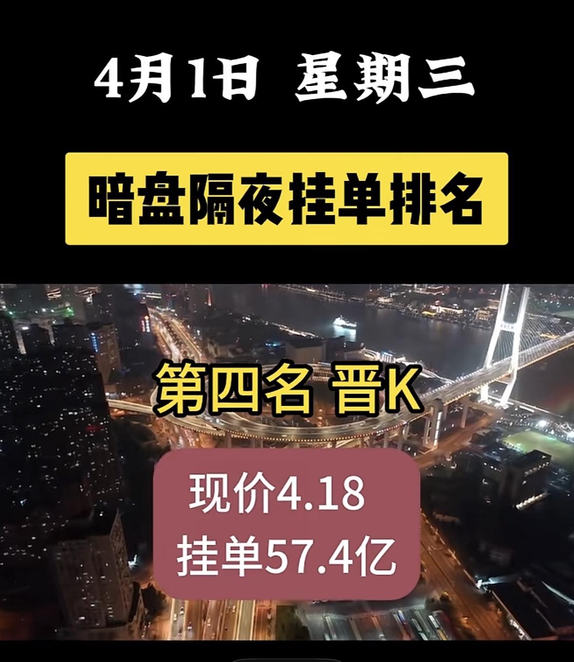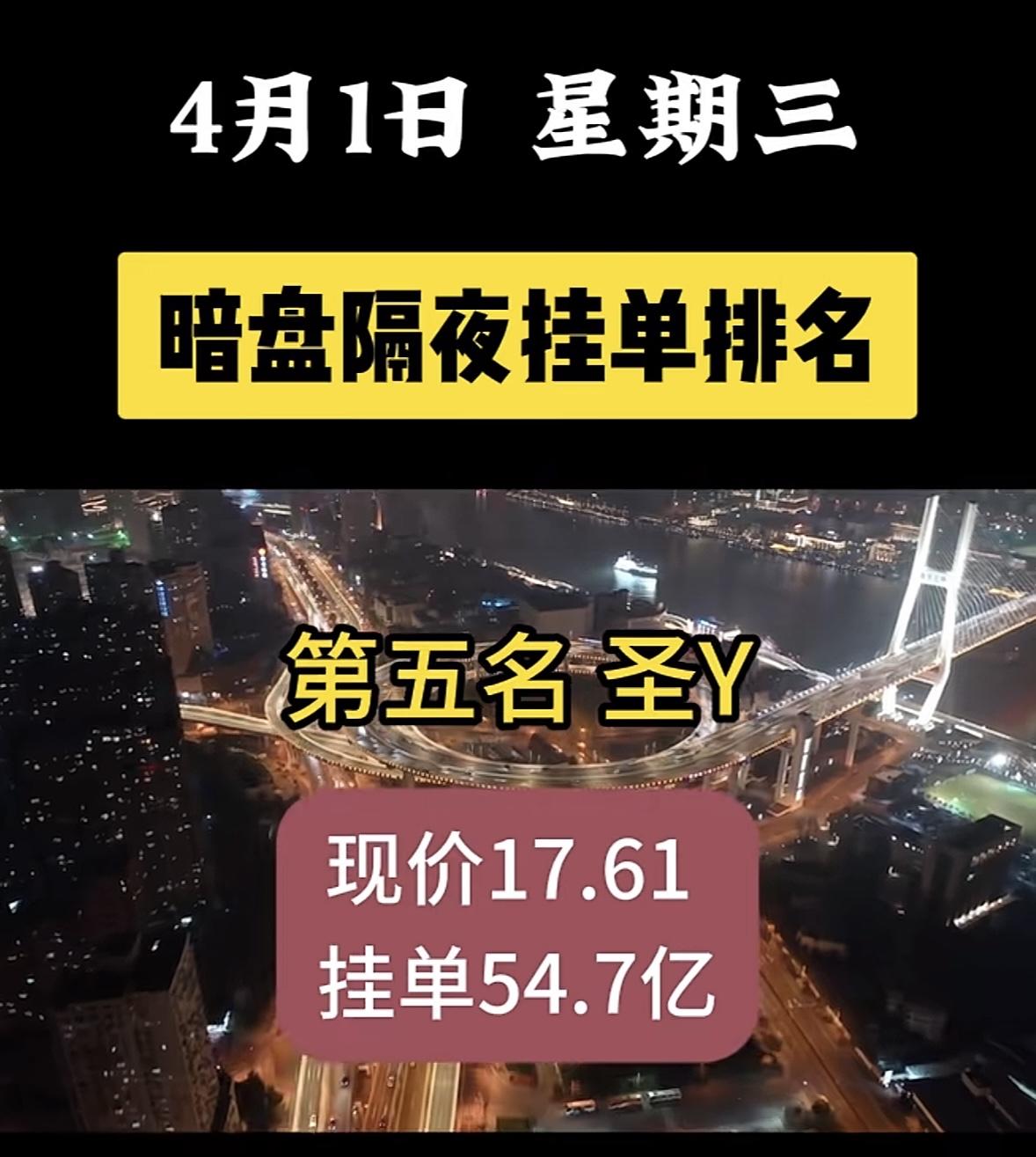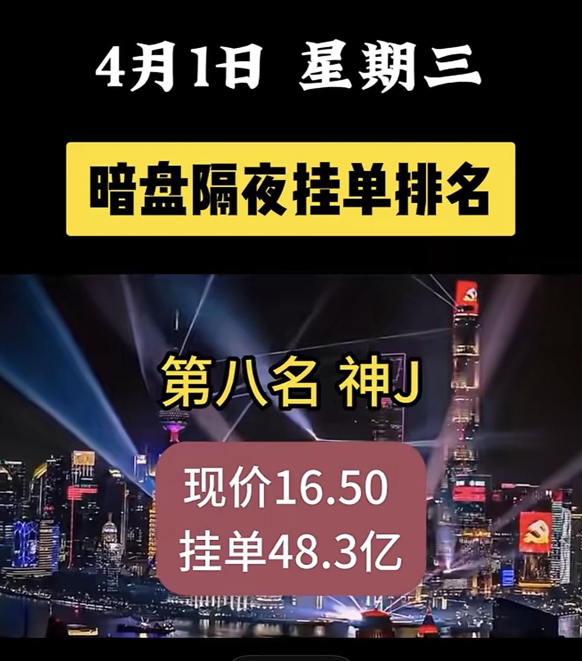4月1日周三暗盘隔夜挂单排名一览表 神剑股份太惹眼了,现价16.50,挂单竟达48.3亿!这数字相当惊人。 看看神剑股份之前的表现,在A股塑料制品板块深度调整时,它走出独立冲高回落行情,收跌1.90%,报16.48元。盘中一度冲到17.45元的阶段新高,又快速跳水到15.12元,日内振幅超14.6%,全天成交额46.27亿元,换手率35.62%。这充分显示出资金的极致分歧。此次暗盘这么高的挂单,后续走势很值得关注,说不定会有大动静。