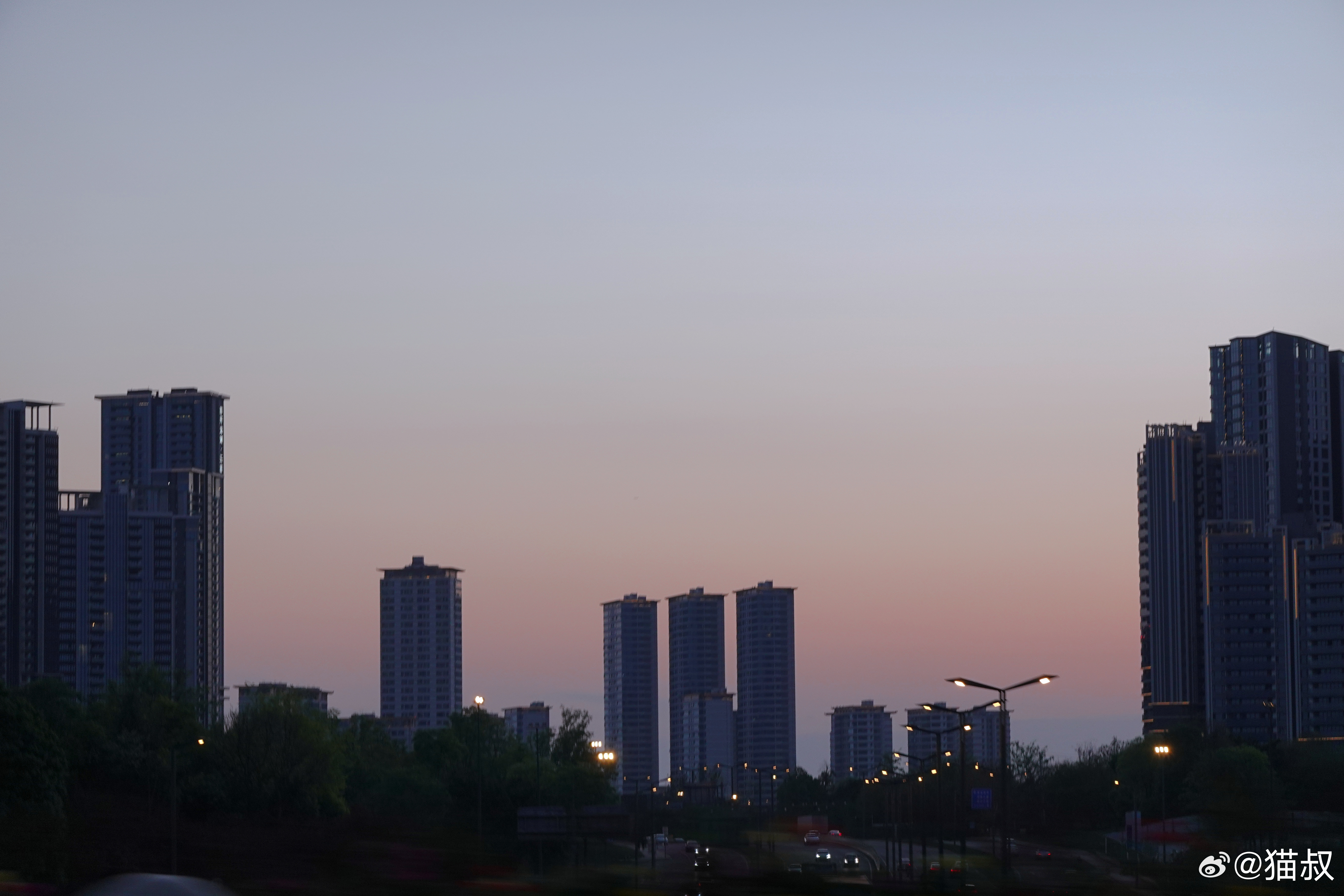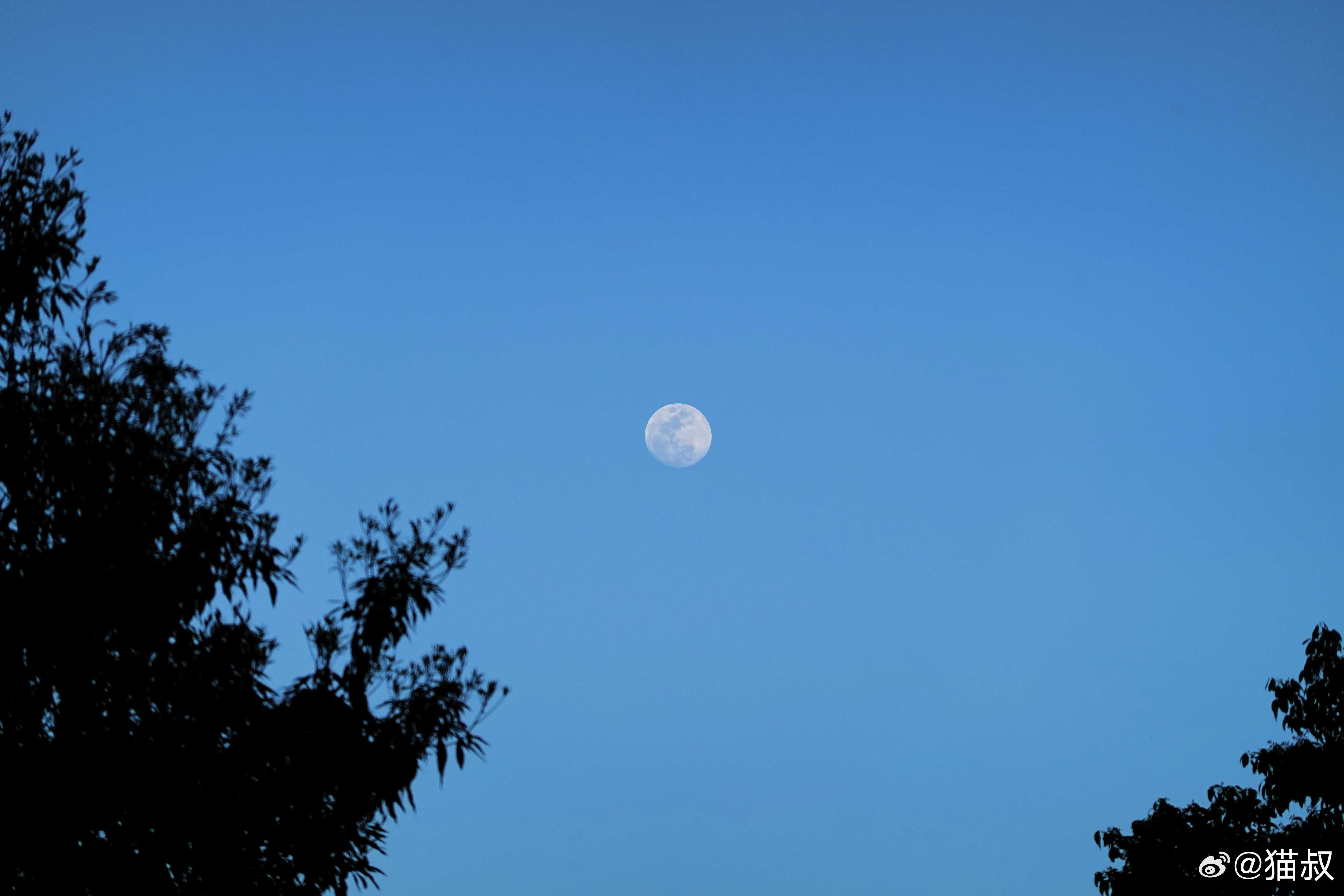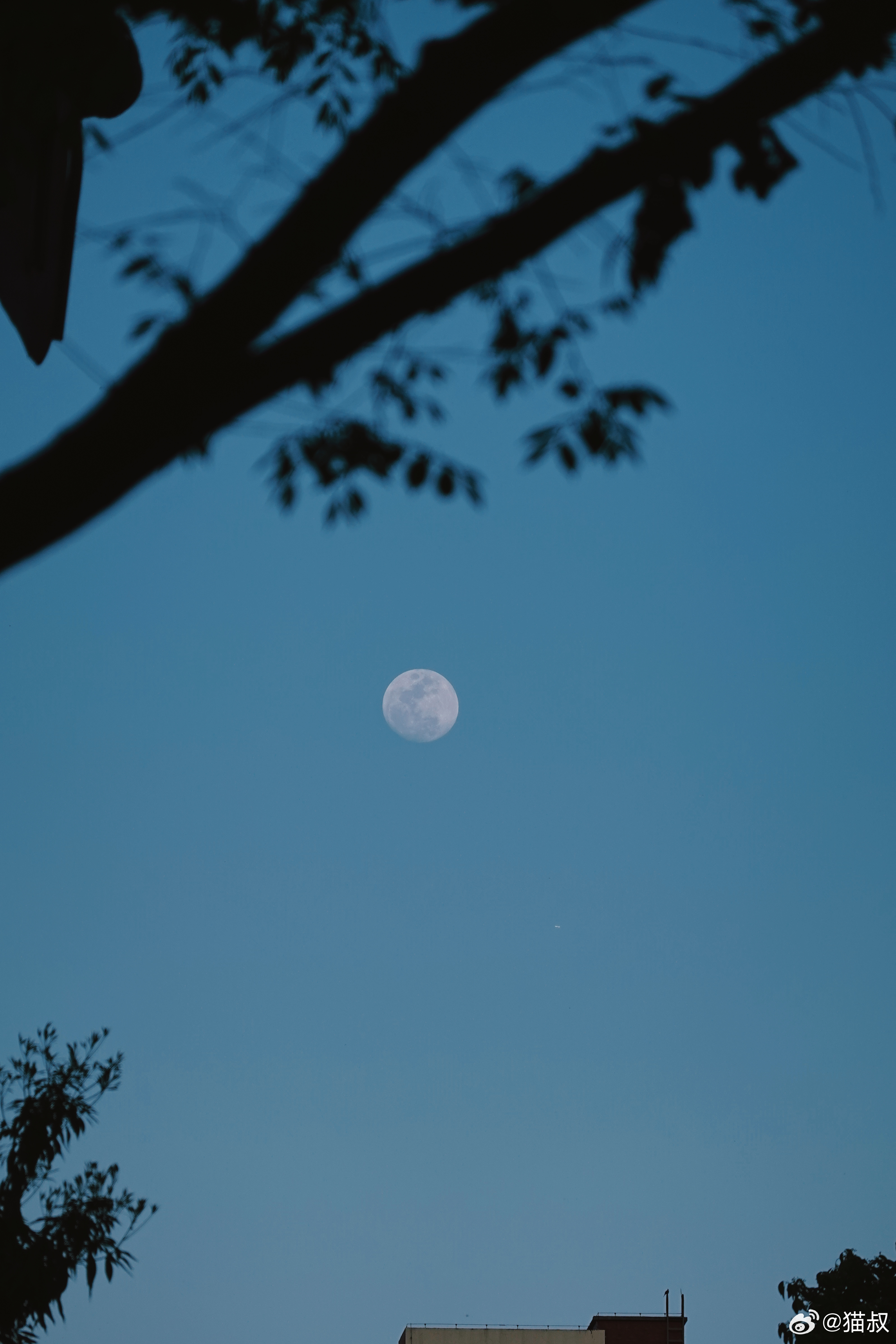 今天的天透蓝了一整天,天还没黑透,就看到了月亮。 成都·富森美·天府