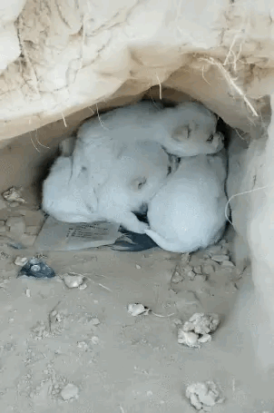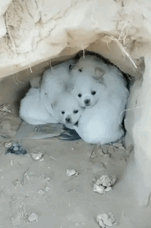 一窝流浪小狗蜷缩在洞里,惹人怜爱,狗妈早已不见踪迹!