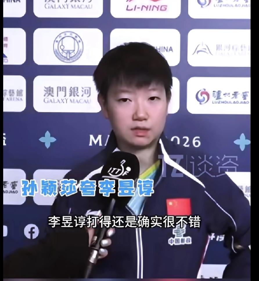 这局双向奔赴的夸夸局,我能磕一万遍! 谁还没看莎莎和昱谆的赛后互动啊,真的被暖到心坎里了😭 台北选手李昱谆在赛后采访里说,能抽到和世界第一孙颖莎交手,她真的超开心!哪怕3-0不敌,也完全没压力,只觉得能和顶尖选手过招特别幸运。还忍不住夸莎莎打球超级专业,发出的球旋转超强,跟着世界第一学习的机会太难得了~ 而莎莎也大方回应,直言李昱谆打得很不错,开局几个球的表现就很好,给予了对手满满的认可与鼓励。 赛场上是全力以赴的对手,赛场下是互相欣赏的彼此。这份双向的夸赞,没有输赢的计较,只有对乒乓球的热爱和对对手的尊重,真的太戳人了!为两位选手的格局和情谊点赞👍 孙颖莎 李昱谆 乒乓球