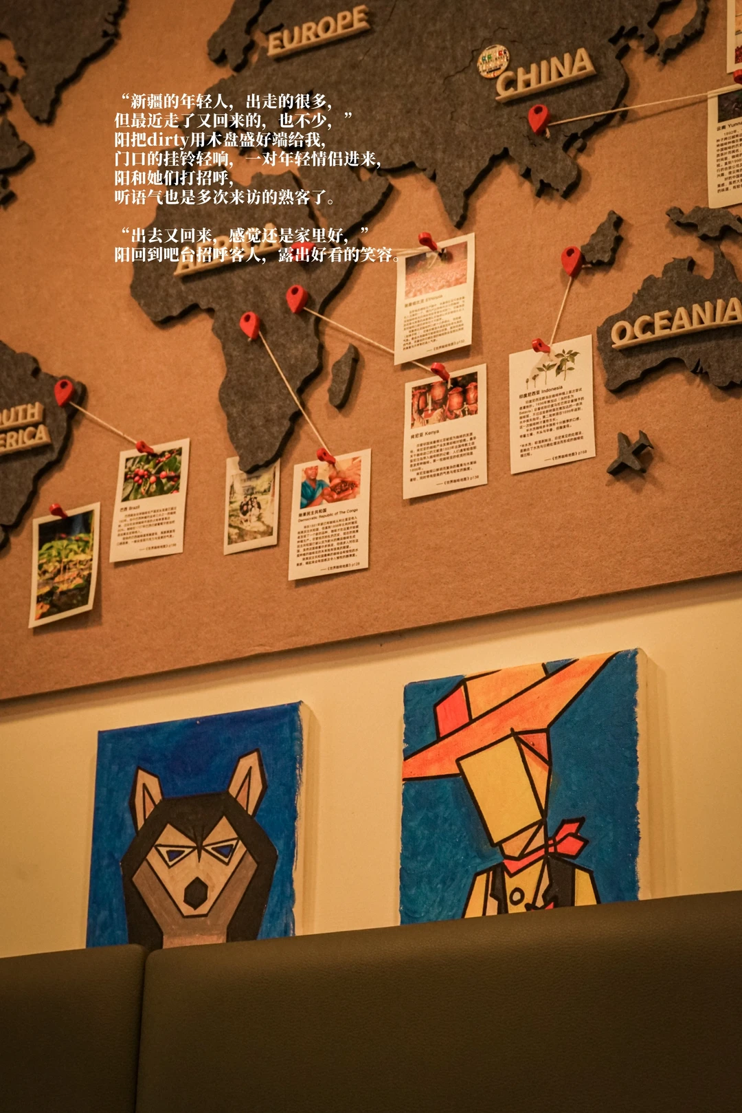“新疆的年轻人,出走的很多,但最近走了又回来的,也不少,”阳把dirty用木盘盛好端给我,门口的挂铃轻响,一对年轻情侣进来,阳和她们打招呼,听语气也是多次来访的熟客了。
