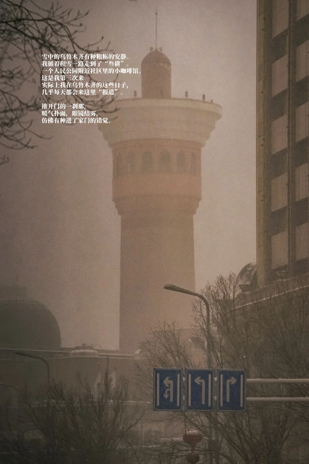 雪中的乌鲁木齐有种粗粝的安静,我循着积雪一路走到了“叁耕”——一个人民公园附近社区里的小咖啡馆。这是我第三次来,实际上我在乌鲁木齐的这些日子几乎每天都会来这里“报道”,推开门的一刹那,暖气扑面,眼镜结雾,仿佛有种进了家门的错觉。