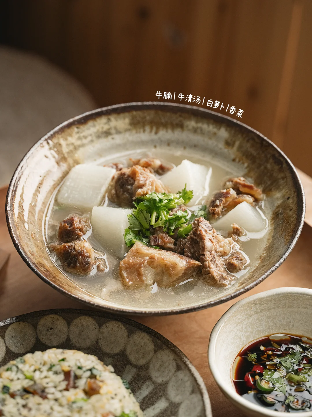 ❷加入白萝卜再炖煮20分钟,调味出锅