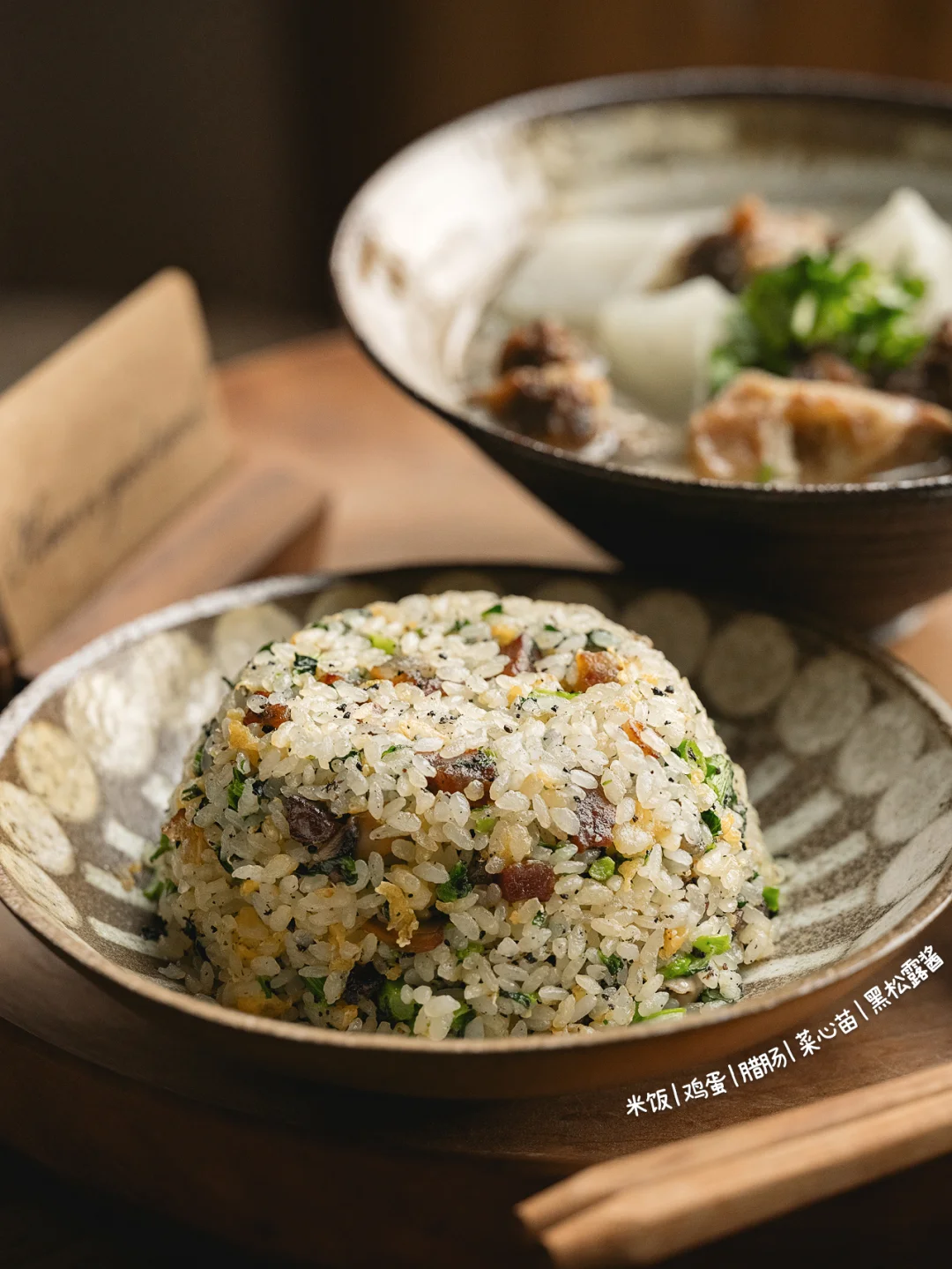 ❶腊肠煎香,加入米饭和蛋液炒至松散