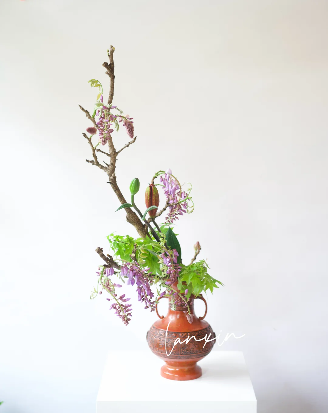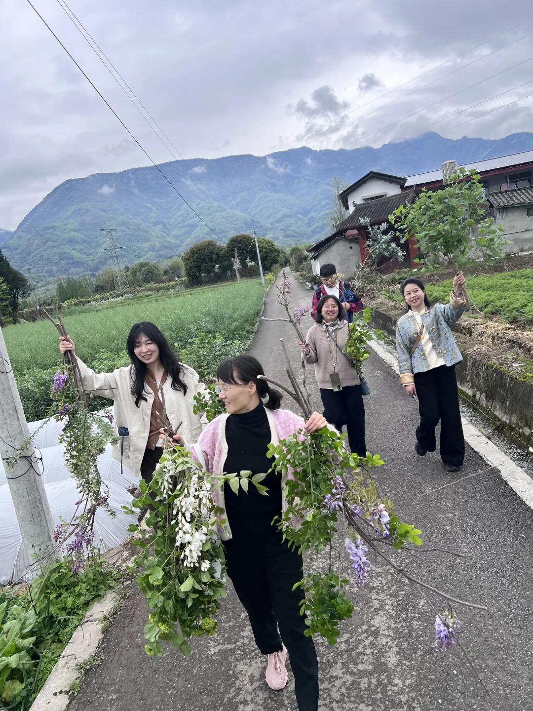 昨天和智豪老师一起带领春游小分队到绵竹采花材插花了,本来听苗圃老板说他地里有木绣球、樱花这些花材,结果偶然发现还有紫藤花,老板咔咔一顿剪,紫藤、木绣球、小手球、棣棠等剪了满满一车。实现紫藤花现剪现插的美好一天[哇R]