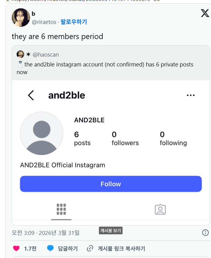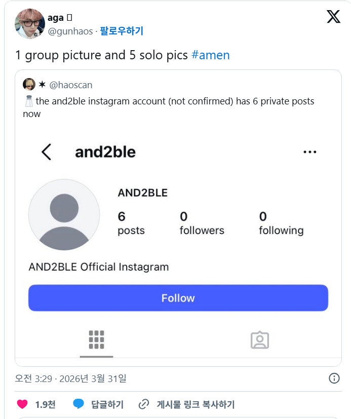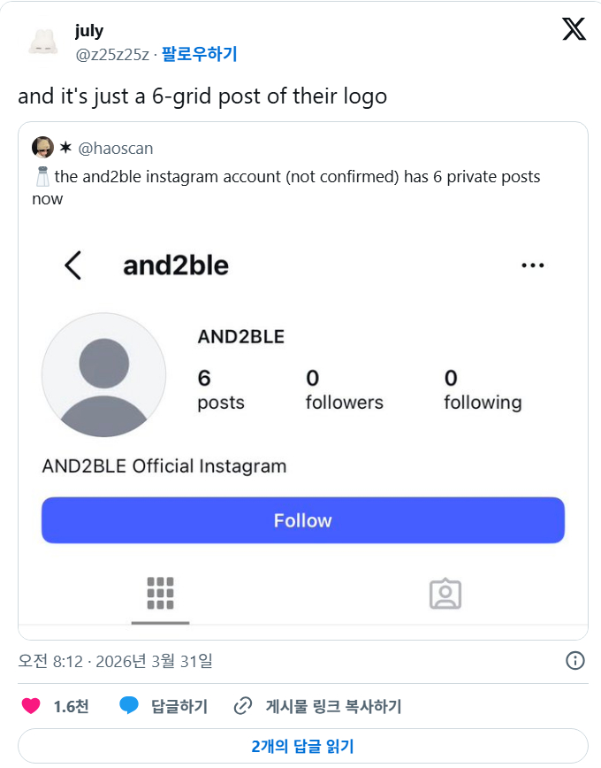 【Theqoo】AND2BLE官方Ins上传6条非公开内容后推网友们的猜测: