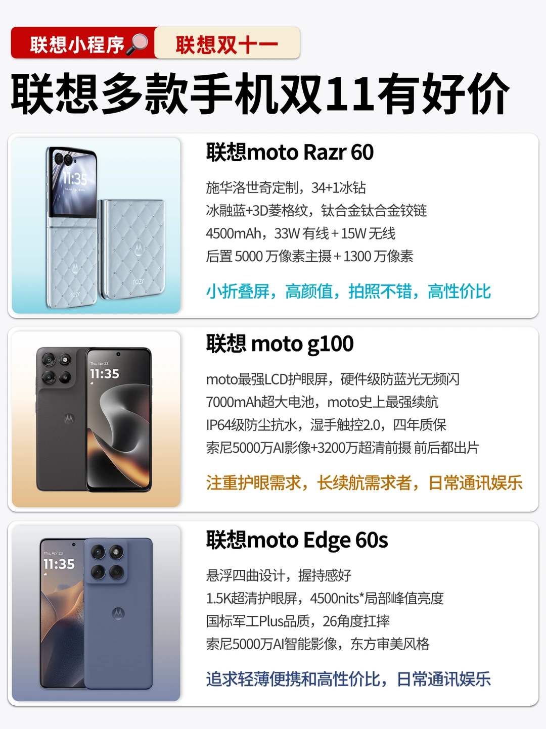 联想小程序🔎【联想双十一】选购手机,不仅价格有优惠,还有多重好礼赠送[开箱R]。