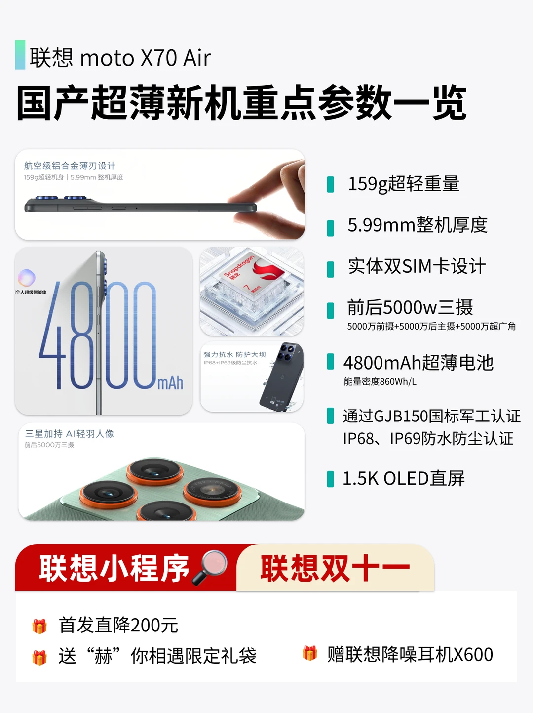 联想悄悄造了台5.99mm的国产Air新机:联想moto X70 Air