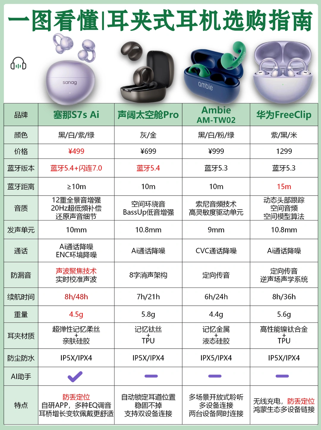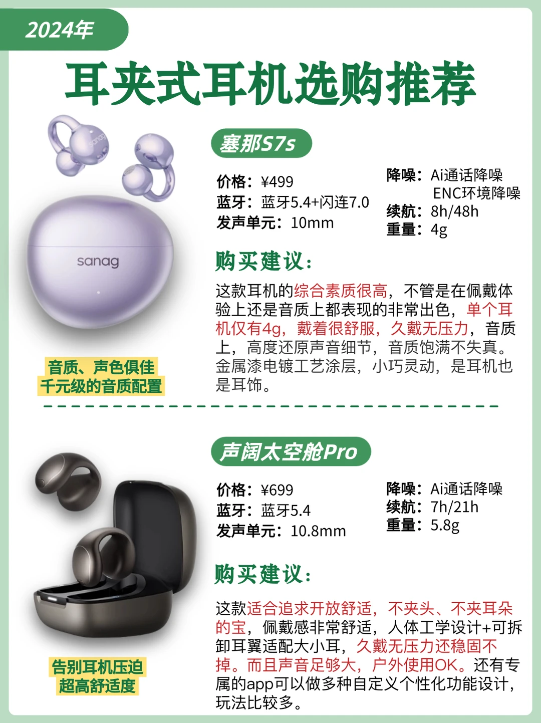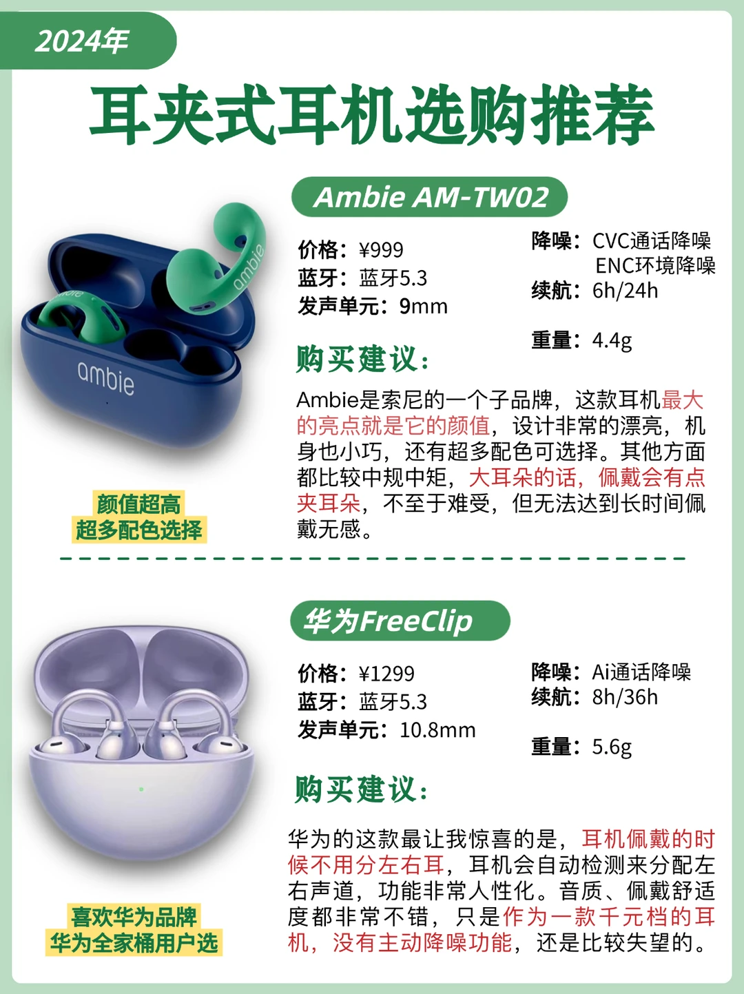 我挑选了现在市面上比较热门的4款耳夹式耳机来分享,希望能给友友们一些参考~