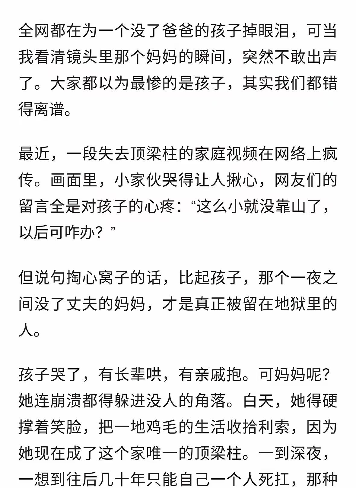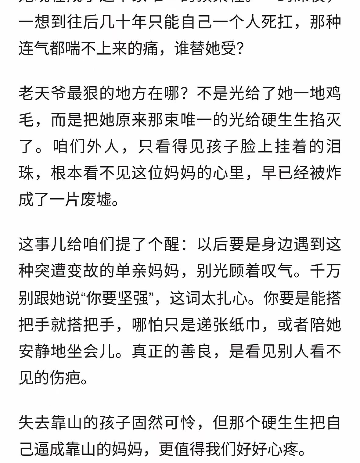 孩子没爸全网心疼,最惨的是张妈妈,白发人送黑发人,独子呀!老伴也没了!以后的日子怎么过呀?真的是天塌了! 最惨的最张妈妈,老公没了,儿子也没了,接下来女儿也很惨。老婆可以再嫁,有学历,有年轻,漂亮。 张妈妈最惨了,白发人送黑发人。 不要为有钱人担心,担心也没用,有钱人的日子你想不到有多舒坦。